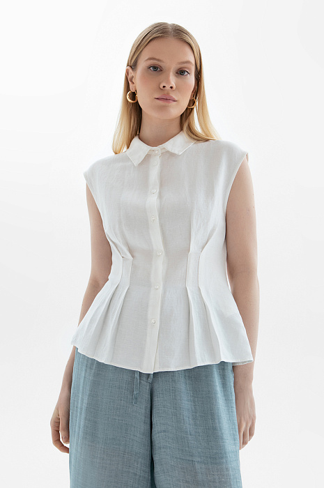 Блузка изо льна и вискозы, цвет белый, цена 9 990 руб. - купить в интернет-магазине KANZLER