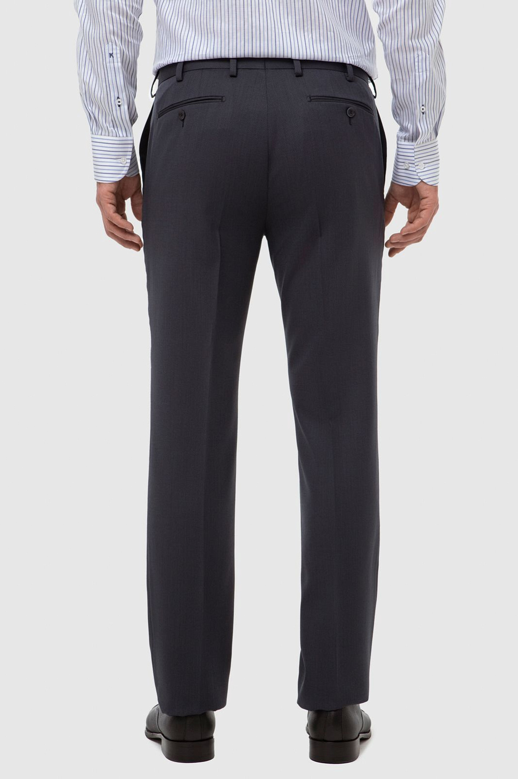 Дизайнеры KANZLER выполнили прямые брюки в оттенке графит из тонкой костюмной ткани. Мягкая премиальная шерсть Супер 120S приятна на ощупь и поддерживает оптимальную температуру, а благодаря специальной технологии материал устойчив к сминанию. Практичная модель со стрелками проста в уходе и будет уместна в длительных бизнес-поездках и путешествиях. Слегка зауженные брюки будут прекрасно смотреться с пиджаком и в строгом офисном, и в менее формальном повседневном образе с рубашкой. Изделие садится точно по фигуре и выглядит безупречно весь день.