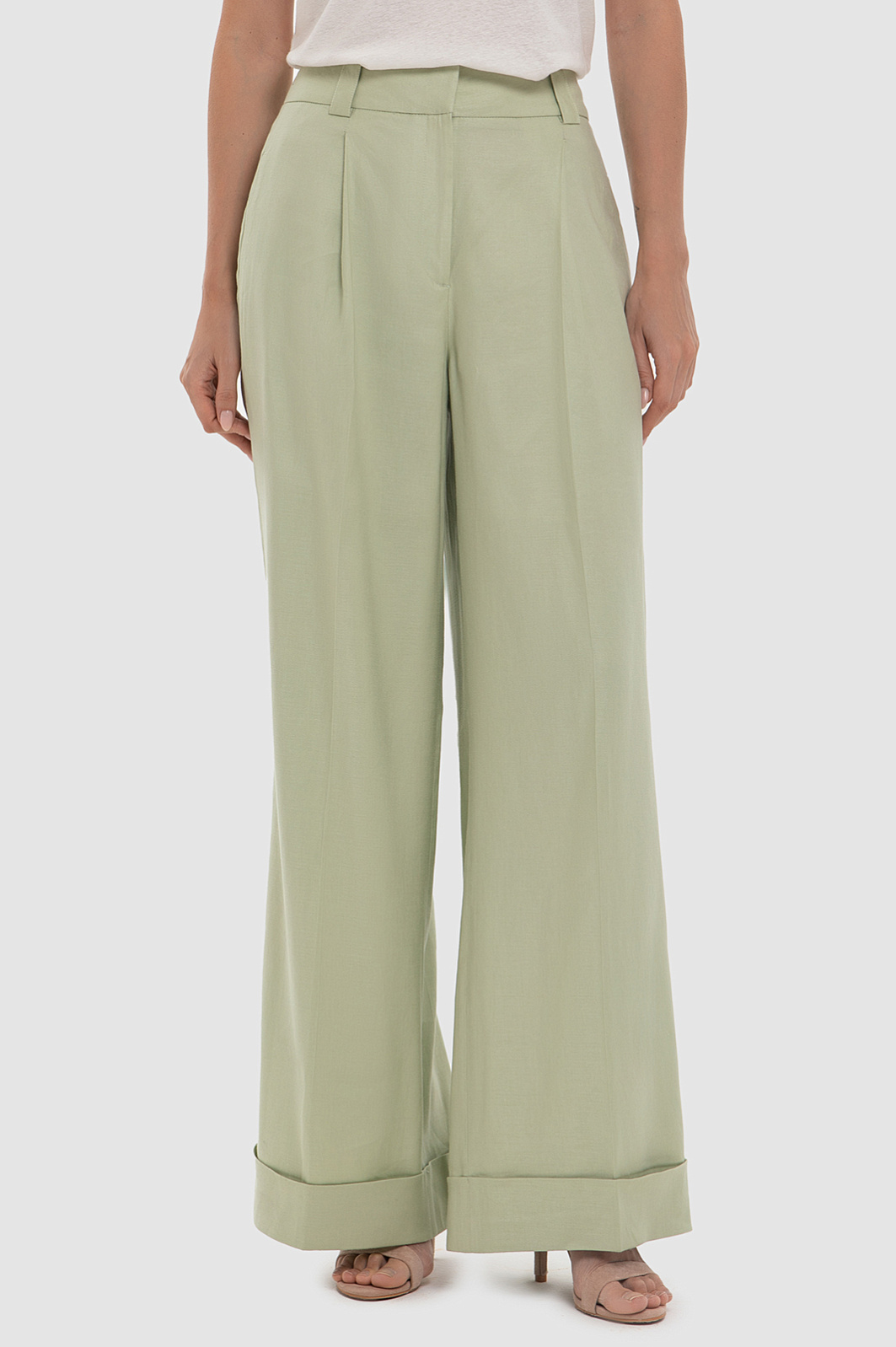 Брюки изо льна и вискозы, цвет оливковый, цена 3 990 руб. - купить в интернет-магазине KANZLER