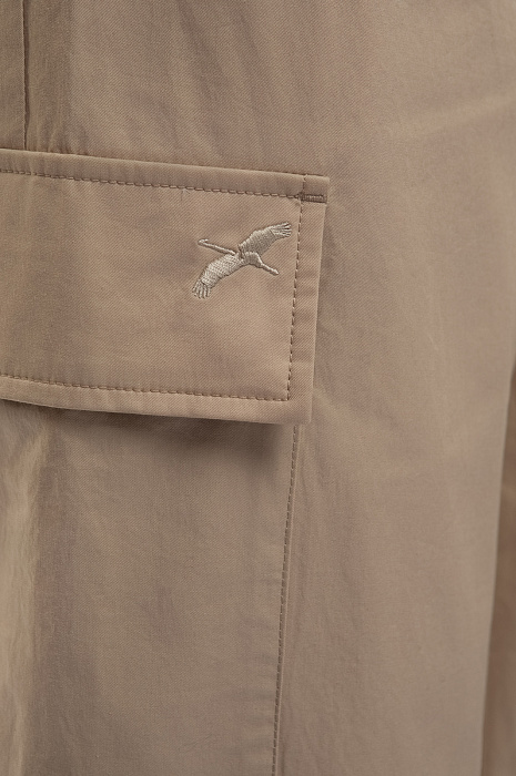 Брюки-карго – безусловный тренд сезона и идеальный вариант для создания комфортного непринужденного образа. Модель прямого кроя с широким эластичным поясом выполнили из 100% гипоаллергенного хлопка. Мягкий и дышащий материал обеспечивает терморегуляцию и дарит телу комфорт во время любых активностей. Базовый бежевый цвет позволяет легко встроить брюки в гардероб, создавая множество сочетаний. Модель дополнили пятью карманами и регулируемыми манжетами, а один из накладных карманов украсили небольшим символом бренда – летящим журавлем. Параметры модели: рост 180, 87-61-91 Размер на модели: S
