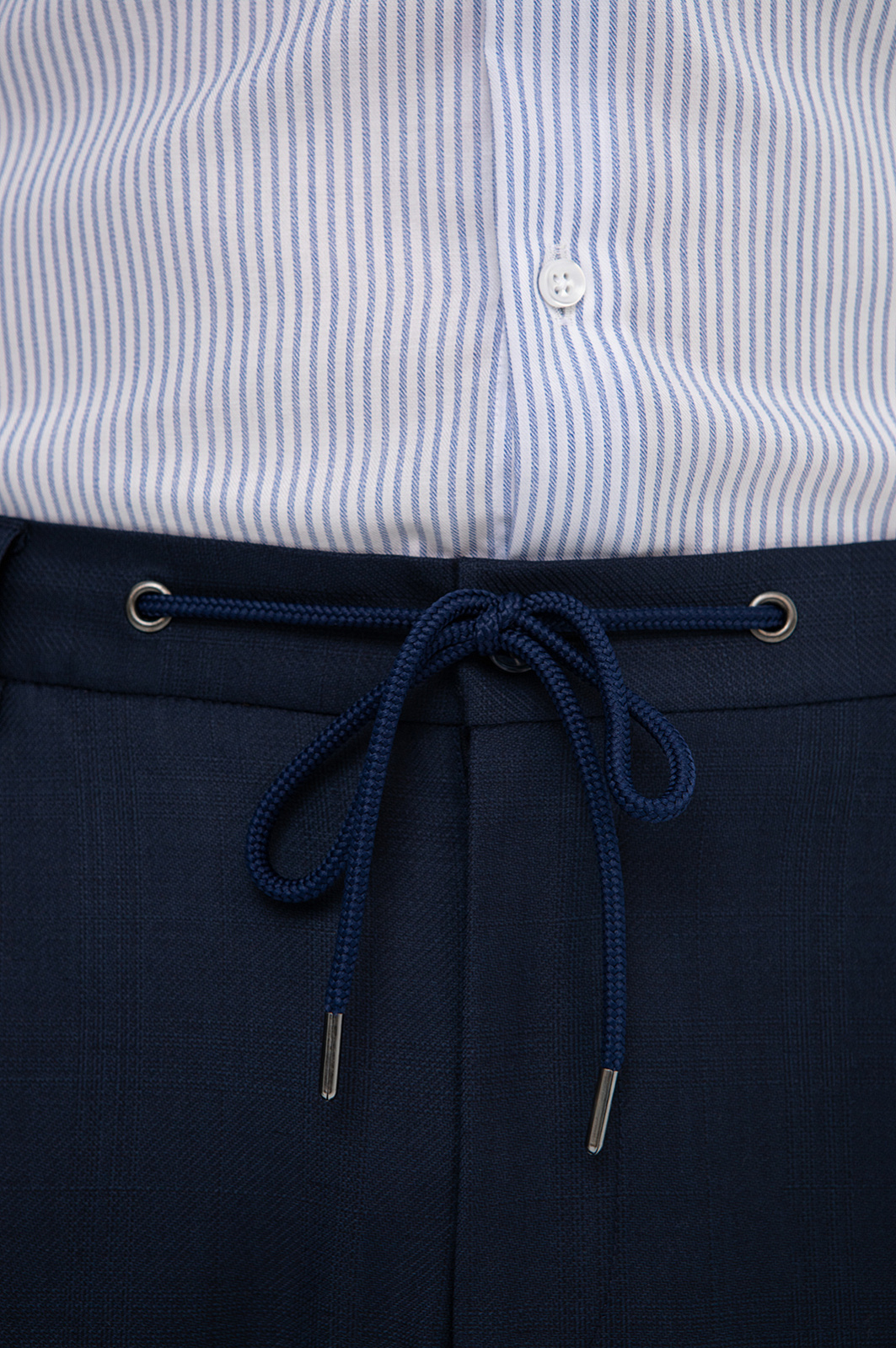 Если вы хотите добавить в свой гардероб что-то по-настоящему практичное, брюки приталенного фасона с регулируемой посадкой — идеальный выбор. Благородный Синий оттенок универсален и подходит как для офиса, так и для торжественных мероприятий. Стрелки подчёркивают классический стиль изделия. Посадка на кулиске и эластичная резинка на поясе сзади — находка для тех, кто ценит комфорт. Они идеально садятся по фигуре, не сковывая движений. Премиальная шерсть Супер 120S славится своей мягкостью и терморегулирующими свойствами, что делает брюки отличным выбором для прохладного сезона. Подкладка из полиэстера дарит дополнительный комфорт, сохраняя идеальную форму брюк даже при активной носке. Дополните образ рубашкой в полоску и кожаными лоферами. Параметры модели: рост 191, 97-77-99 Размер на модели: 50