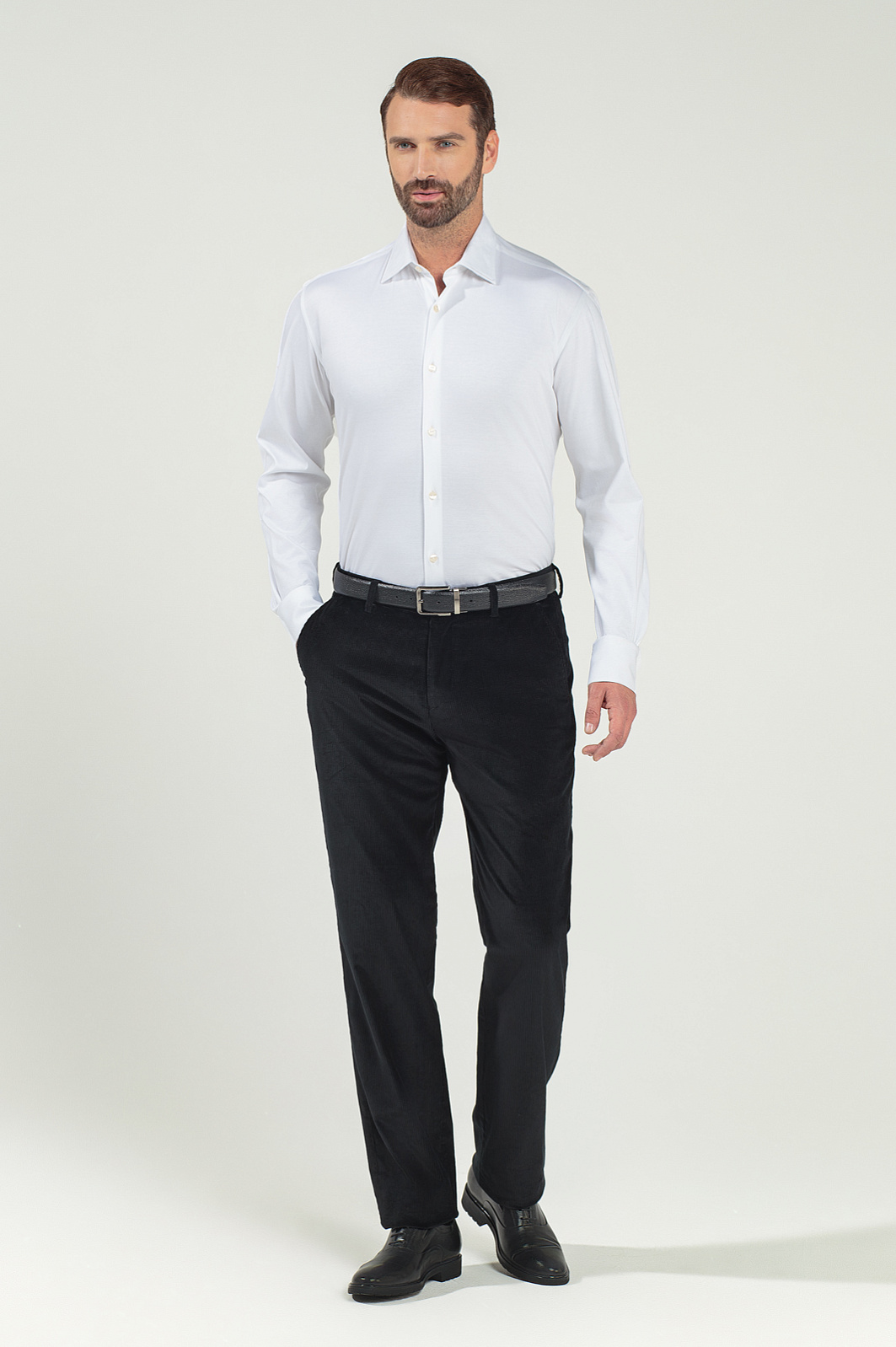 Черные вельветовые брюки KANZLER из лимитированной коллекции идеально подойдут для создания уютных образов в стиле умный кежуал. Классический крой хорошо смотрится на разных типах фигуры: стройном, атлетическом и корпулентном. Он достаточно свободный и не сковывает движений. Вельветовая ткань произведена из натурального гипоаллергенного хлопка (99%), который не препятствует циркуляции воздуха и поддерживает комфортную температуру, и небольшой доли эластана (1%) — для хорошей посадки и сохранения формы. Для создания удобного городского костюма брюки можно дополнить черным вельветовым пиджаком KANZLER из лимитированной коллекции. Параметры модели: рост 189, 102-80-99 Размер на модели: 50