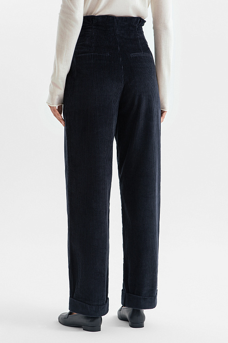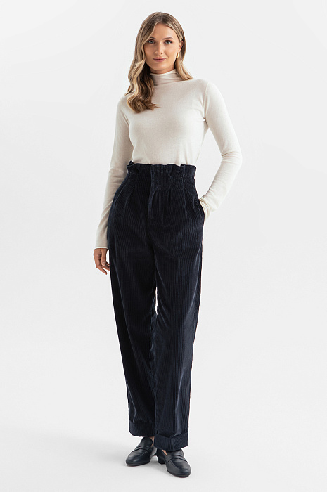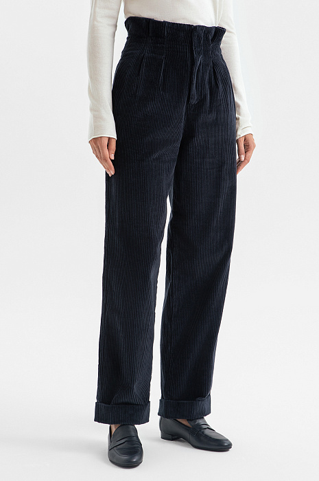 Брюки с защипами из вельвета, цвет синий темный, цена 4 990 руб. - купить в интернет-магазине KANZLER