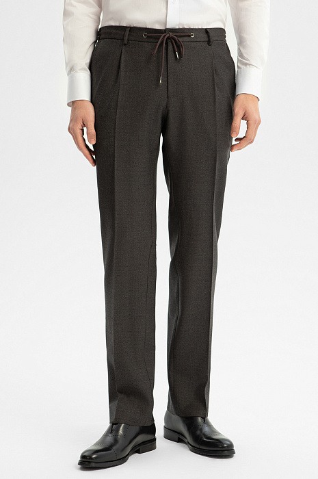 Брюки из шерсти, устойчивой к сминанию, цвет коричневый, цена 14 990 руб., код 268965 - купить в Уфе в интернет-магазине KANZLER