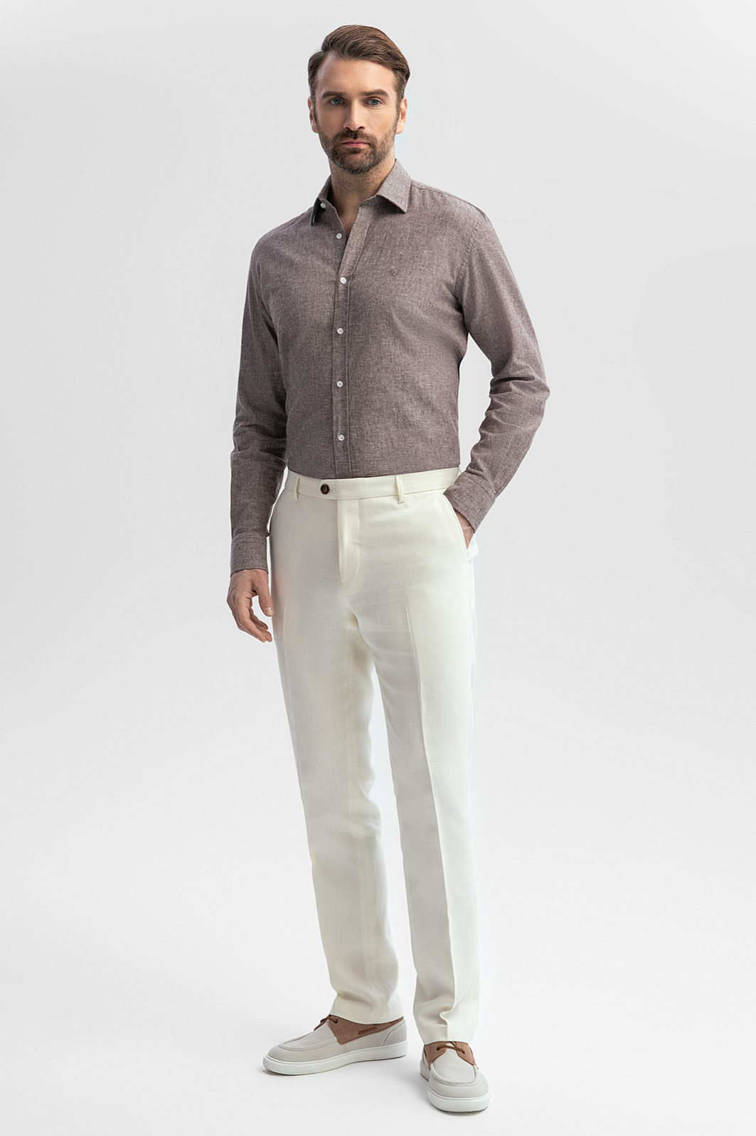 Роскошные белые брюки KANZLER со стрелками изо льна и тенсела созданы для гедонистов, которые умеют наслаждаться жизнью и производить впечатление на окружающих. Изысканный пошив, слегка зауженный изящный силуэт, классический крой и дорогая натуральная ткань создают идеальный баланс между шиком и комфортом. Легкие стрелки создают вертикальные линии, визуально удлиняющие ноги. Натуральная дышащая гипоаллергенная ткань сочетает достоинства льна и тенсела. Гладкие воздухопроницаемые волокна льна обладают способностью охлаждать тело. Нити тенсела, созданные из природного материала (целлюлозы), отлично отводят влагу, сохраняя ощущение свежести. Параметры модели: рост 189, 102-80-99 Размер на модели: 50