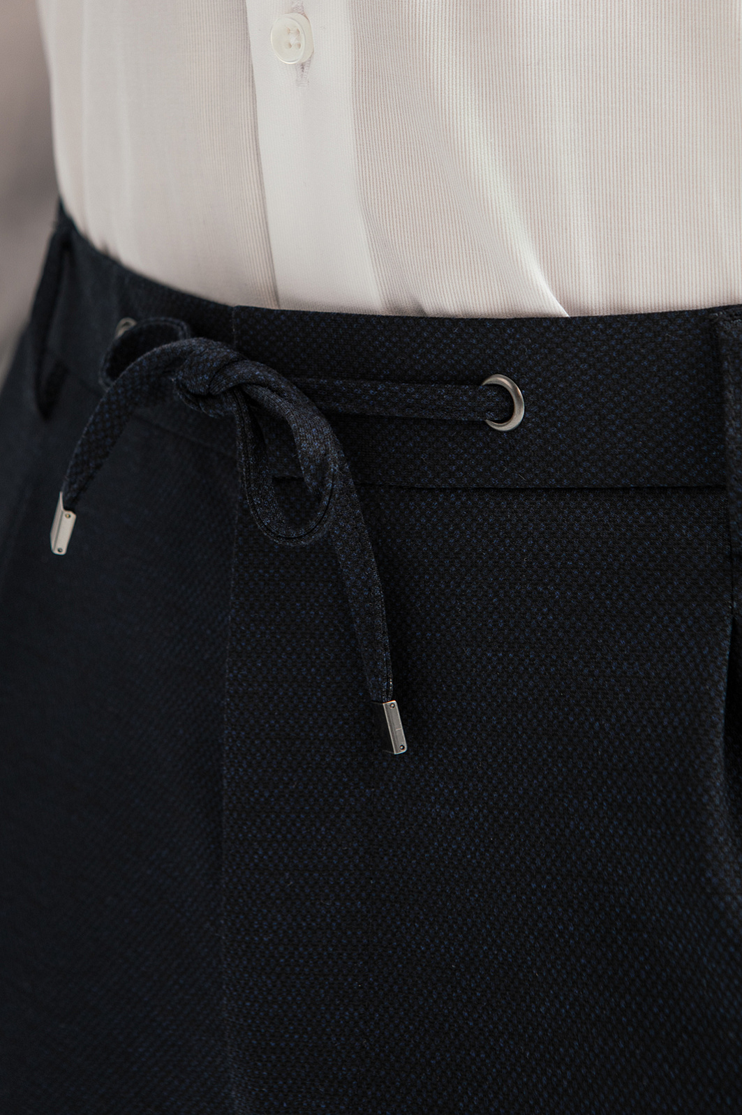 Синие брюки на кулиске из трикотажной ткани, цвет синий, цена 10 990 руб., код 269099 - купить в Уфе в интернет-магазине KANZLER