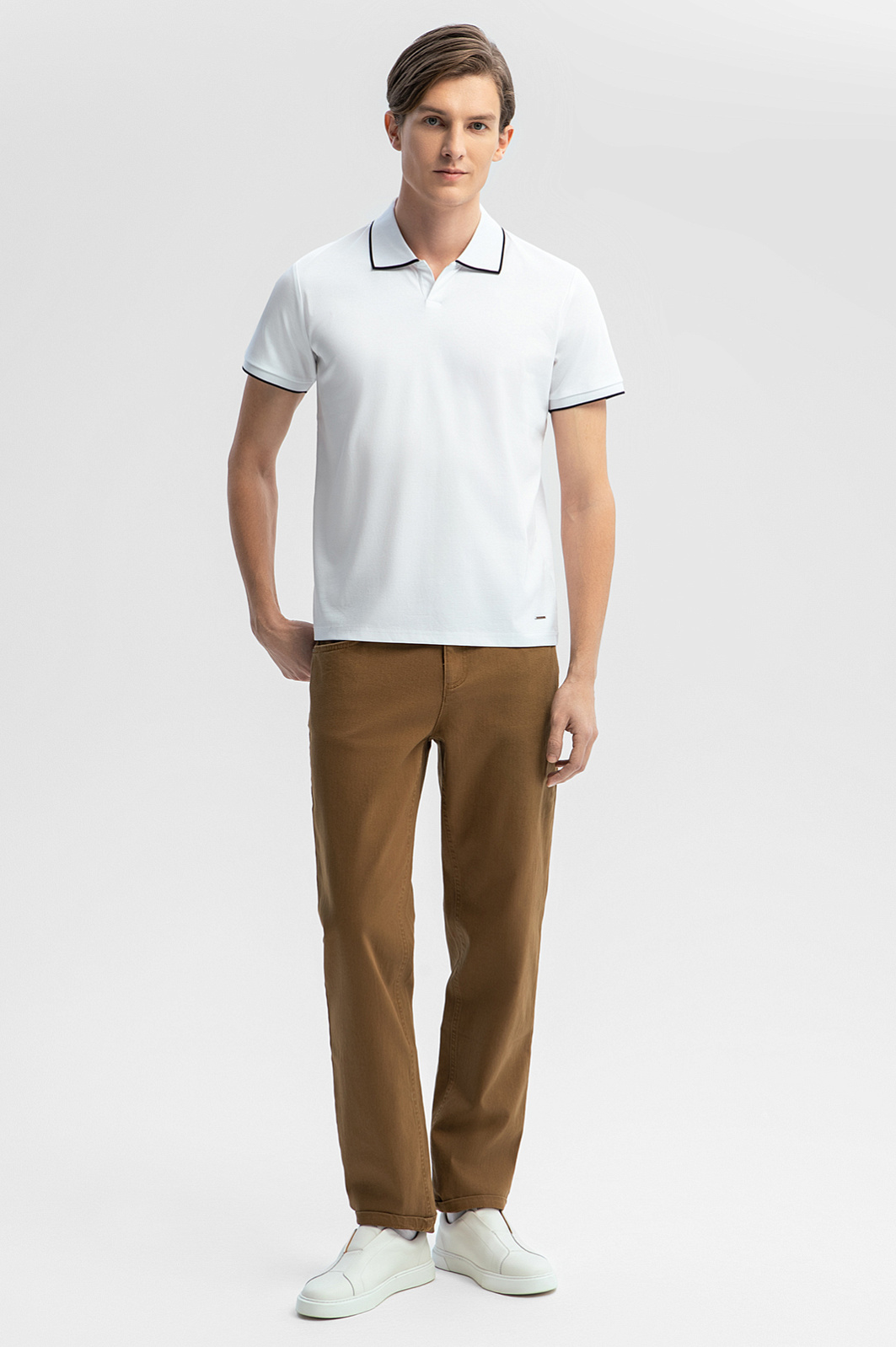 Стильные брюки KANZLER из хлопка оттенка корицы — удобная модель для повседневной жизни, которая сокращает время на сборы, так как хорошо сочетается с любым трикотажным верхом натуральных цветов. Долговечность, надежность и практичность модели обеспечены прочными швами и качественной джинсовой тканью. Прямой свободный крой — залог хорошей посадки и комфорта. Мягкий хлопковый материл подойдет для любого сезона и погоды. Гипоаллергенные воздухопроницаемые волокна поддерживают приятную для тела температуру. Полимерные нити эластана (2%) служат для адаптации к фигуре и сохранения формы. Параметры модели: рост 191, 97-77-99 Размер на модели: 50