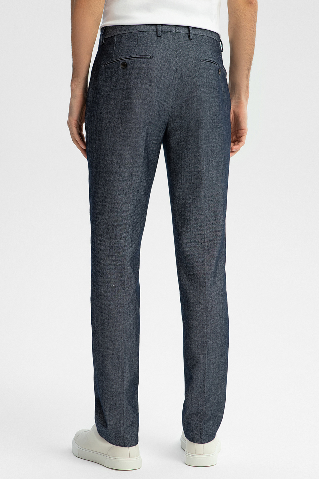 Синие брюки KANZLER из лимитированной коллекции сшиты из дорогой костюмной ткани, которая производится известной семейной мануфактурой Lanificio TG di Fabio (Италия). Классический крой подходит для фигуры любого типа. Прямые по всей длине брючины и легкие стрелки вытягивают силуэт вверх. Роскошная натуральная смесовая ткань сочетает достоинства хлопка и шерсти. Нежные гипоаллергенные волокна хлопка создают для тела комфорт в любую погоду. Упругие волокна шерсти поддерживают форму и придают материалу благородный вид. Небольшое добавление полиамида и эластана служит для прочности и долговечности. Параметры модели: рост 192, 101-76-97 Размер на модели: 50
