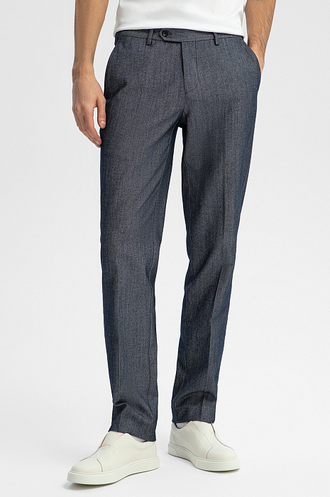 Брюки из хлопка и шерсти Lanificio TG di Fabio, лимитированная коллекция, цвет синий, цена 12 990 руб., код 269376 - купить в Уфе в интернет-магазине KANZLER