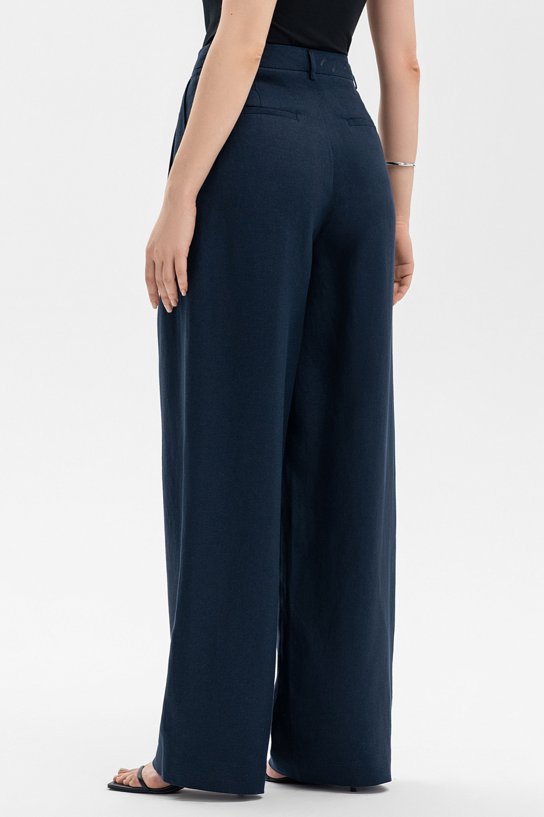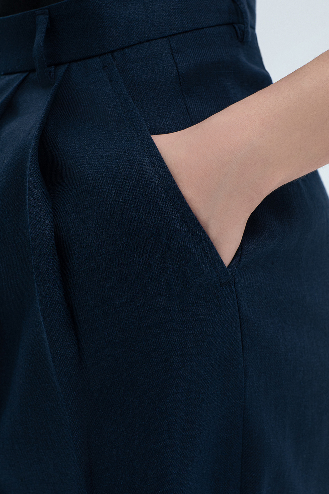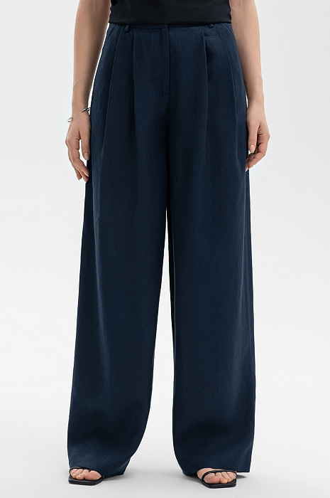Брюки изо льна, цвет синий темный, цена 10 990 руб. - купить в интернет-магазине KANZLER