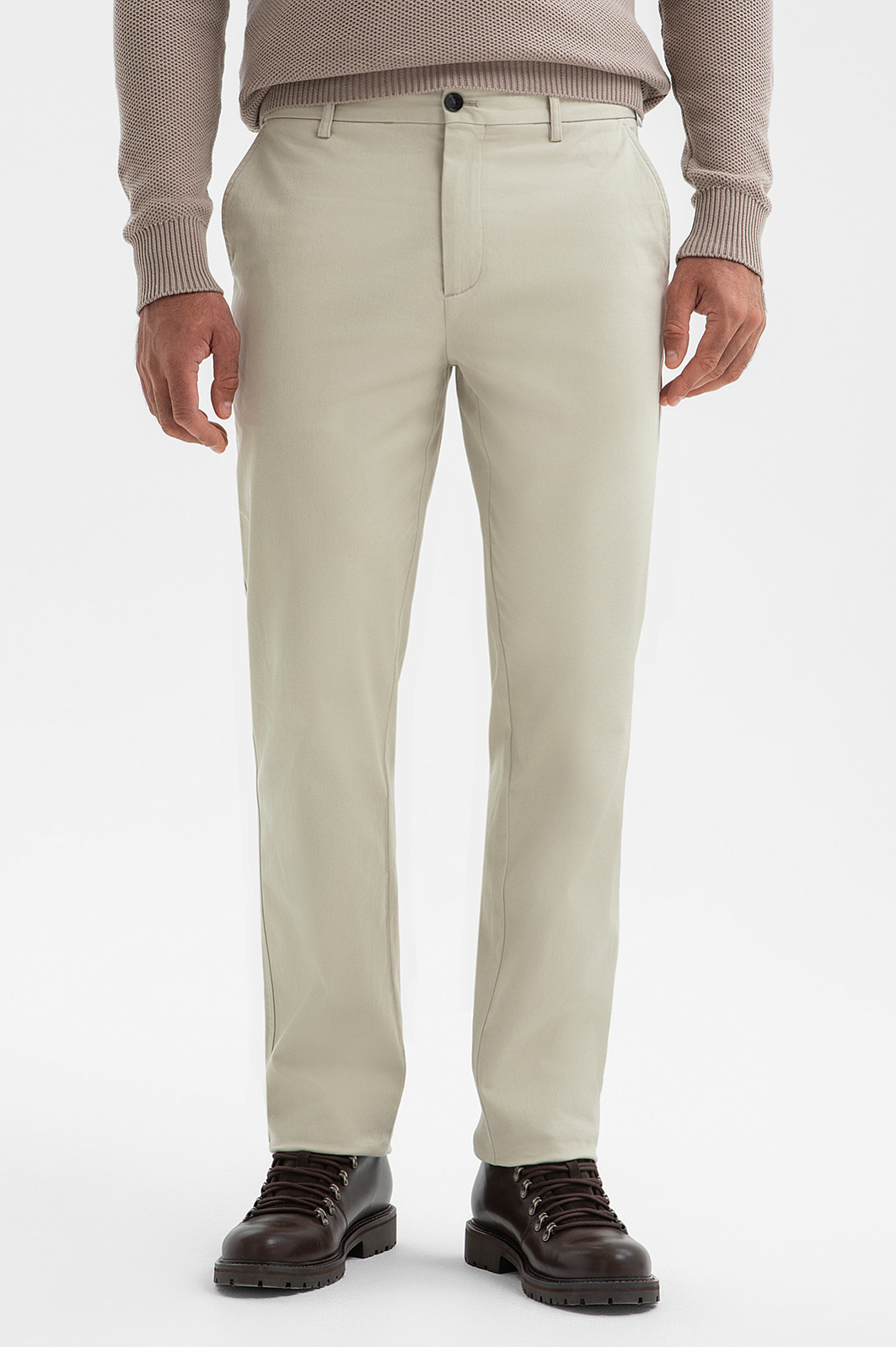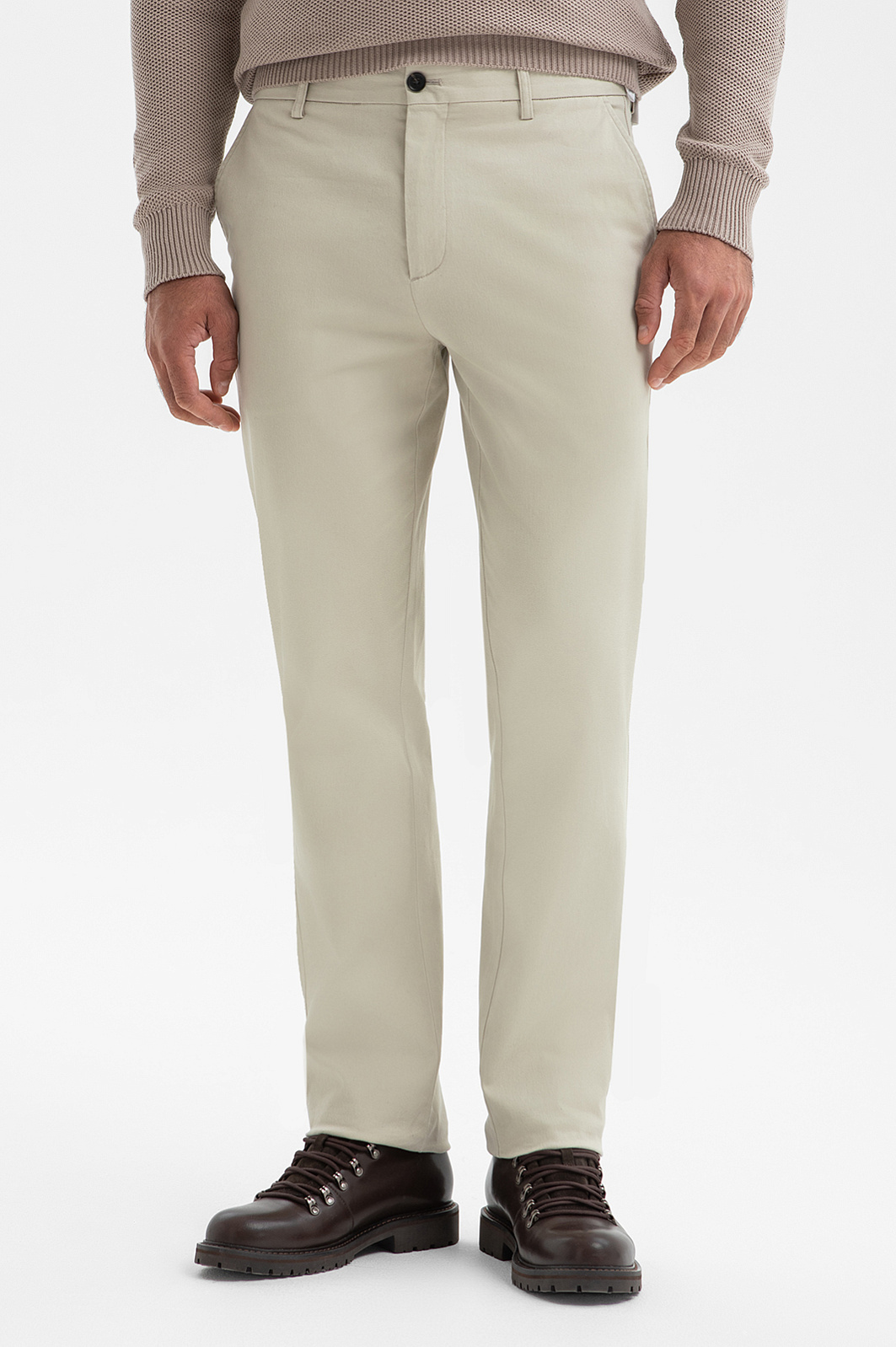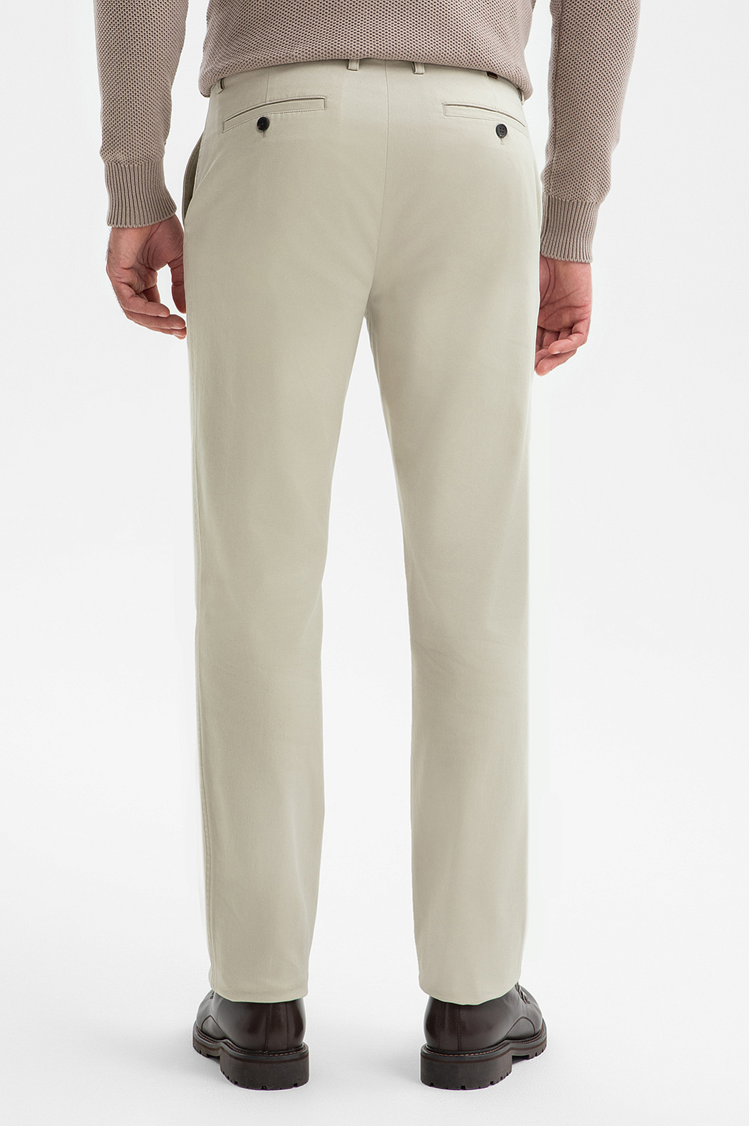 Брюки KANZLER оттенка экрю выполнены из натурального хлопка. Универсальный оттенок гармонично сочетается со светлыми и контрастными рубашками, трикотажем, пиджаками, создавая как нарядные, так и деловые образы. Крой обеспечивает удобную посадку и естественные пропорции для любого типа фигуры. По бокам расположены практичные карманы, сзади — аккуратные карманы в рамке с застёжкой на пуговицу, придающие модели завершённый и строгий вид. Воздухопроницаемый гипоаллергенный хлопок с добавлением эластана (2%) делает ткань мягкой, приятной на ощупь и слегка эластичной для комфорта в движении. Параметры модели: рост 192, 108-83-102 Размер на модели: 50
