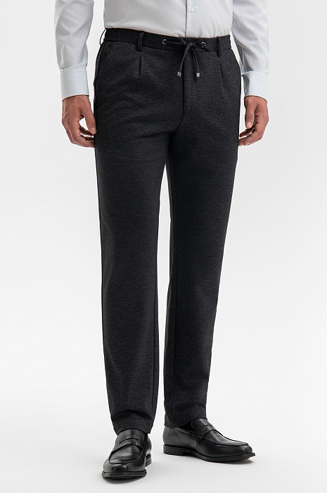 Неформальные офисные брюки KANZLER на кулиске в тёмно-сером оттенке — удачное сочетание делового стиля и повседневного комфорта. Подходящий выбор для тех, кто ценит эстетичный образ и ощущение свободы в течение дня. Пояс с кулиской обеспечивает индивидуальную посадку и удобство. Прилегающий крой подчёркивает силуэт и визуально вытягивает фигуру. Практичный долговечный функциональный смесовой материал (50% нейлон, 30% полиэстер, 18% район) устойчив к сминанию, хорошо держит форму, пропускает воздух и приятен на ощупь. Параметры модели: рост 189, 102-80-99 Размер на модели: 50