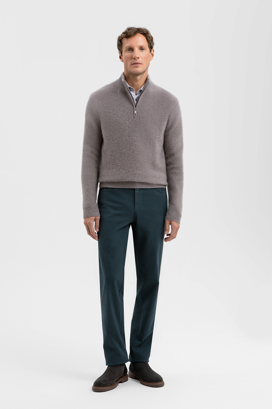 Брюки KANZLER спокойного серо-зеленого оттенка созданы для тех, кто ценит сдержанную элегантность и безупречное качество в повседневном стиле. Джинсовый крой и классический силуэт обеспечивают свободу движения и естественную посадку. Отделочные швы выполнены в тон, что подчёркивает минималистичный характер модели. Плотная хлопковая ткань с добавлением эластана мягко подстраивается под индивидуальные особенности фигуры, сохраняет форму и поддерживает оптимальную для тела температуру. Подкладка из 100% хлопка обеспечивает ощущение свежести и комфорта даже при длительной носке. Параметры модели: рост 188, 97-82-92 Размер на модели: 50
