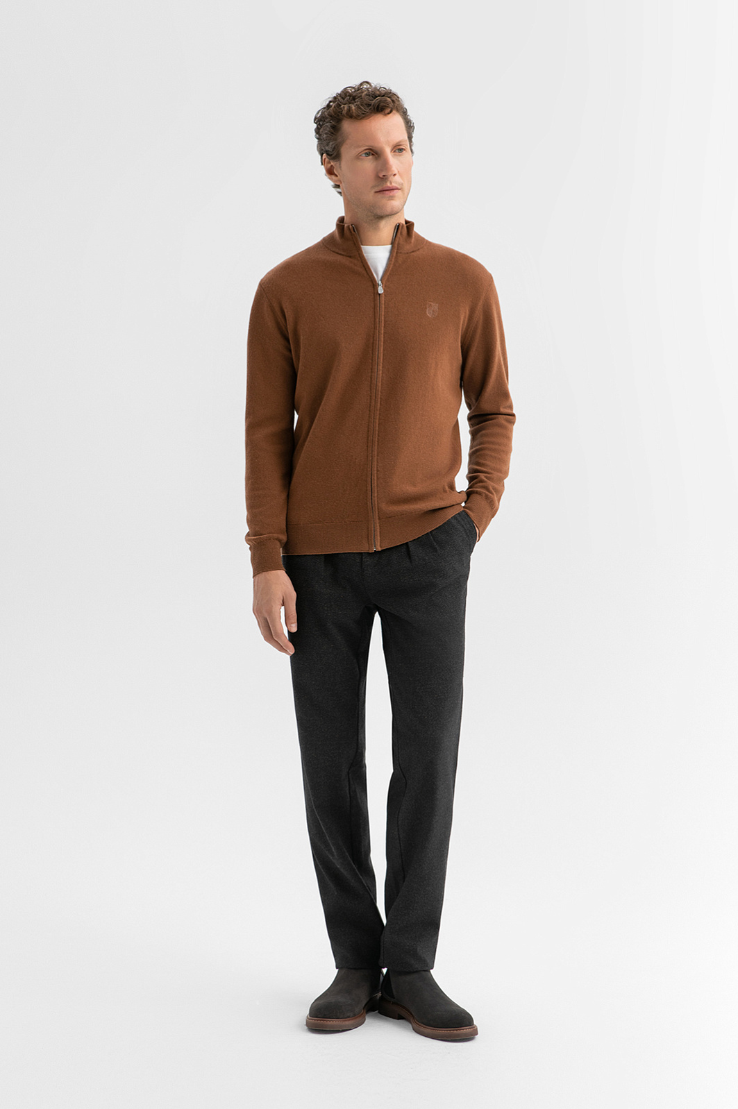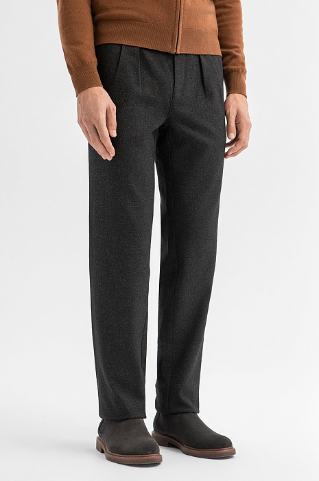 Коричневые брюки KANZLER прямого кроя с мягкими защипами способны легко заменить джинсы, добавив образу элегантности. В сочетании с трикотажем или рубашкой, модель станет основой слегка расслабленных сочетаний в стиле умный кежуал для офиса без строгого дресс-кода или уик-энда. Саржевое плетение с лёгким меланжевым эффектом придаёт ткани фактурность и сложность, а глубокий коричневый оттенок — спокойную сдержанность. Смесовой материал на основе натурального воздухопроницаемого хлопка дышит и сохраняет тепло. Добавление вискозы с эластаном делает его прочным, долговечным и служит хорошей посадке. Параметры модели: рост 188, 97-82-92 Размер на модели: 50