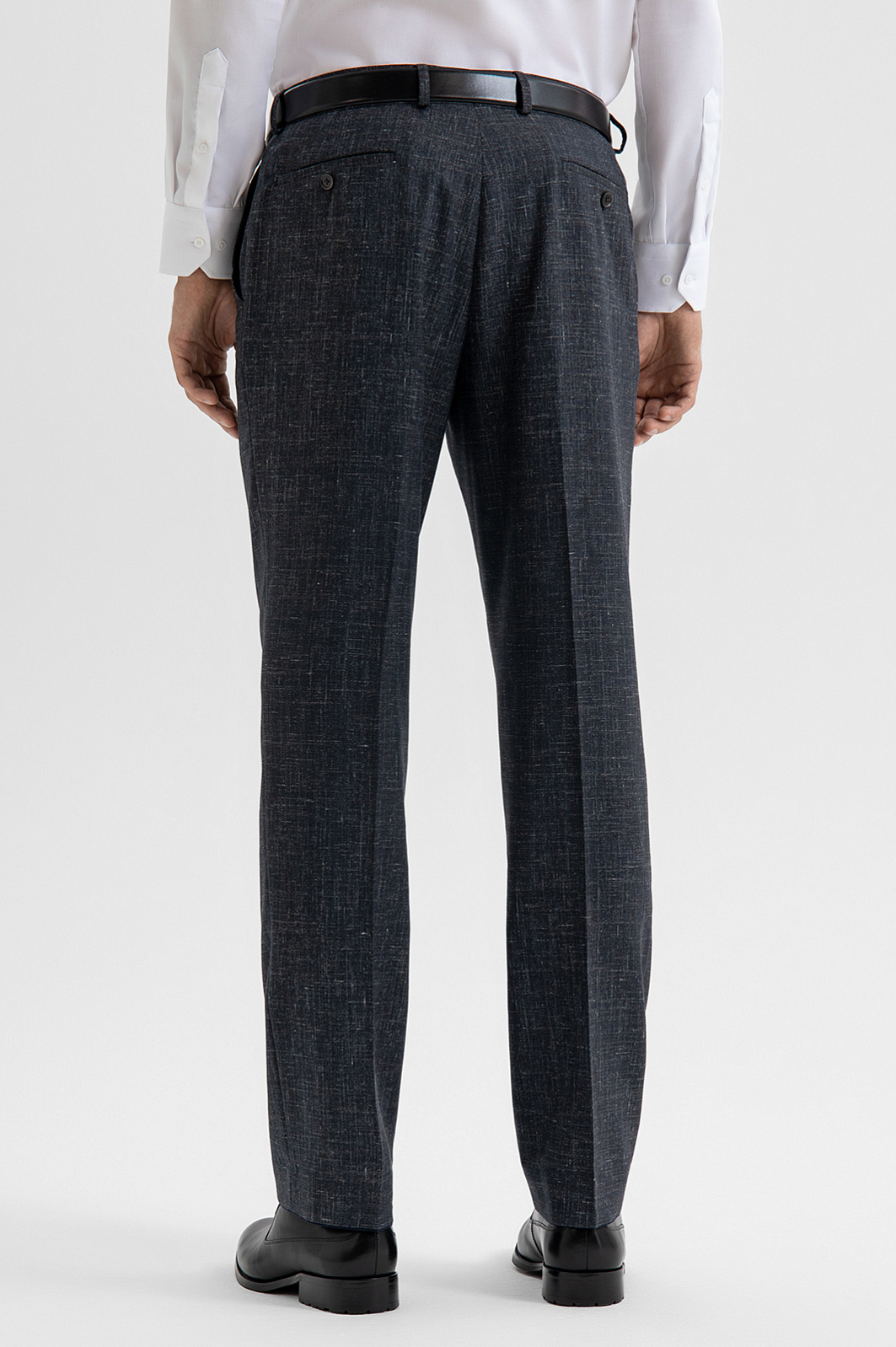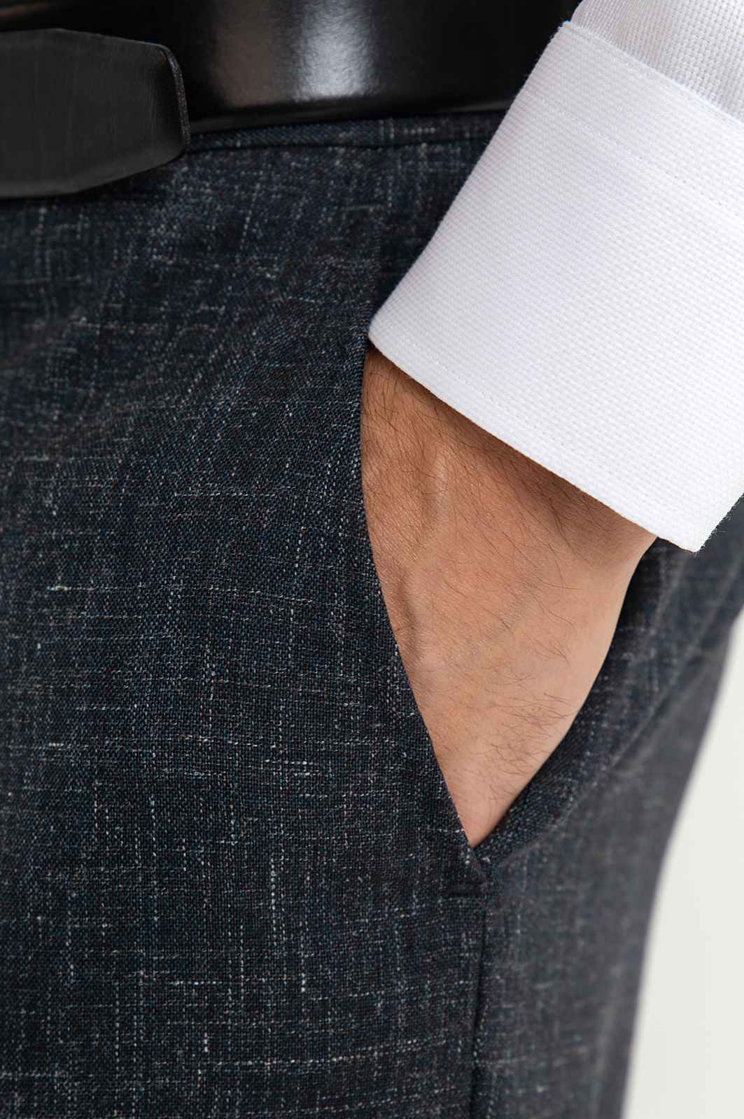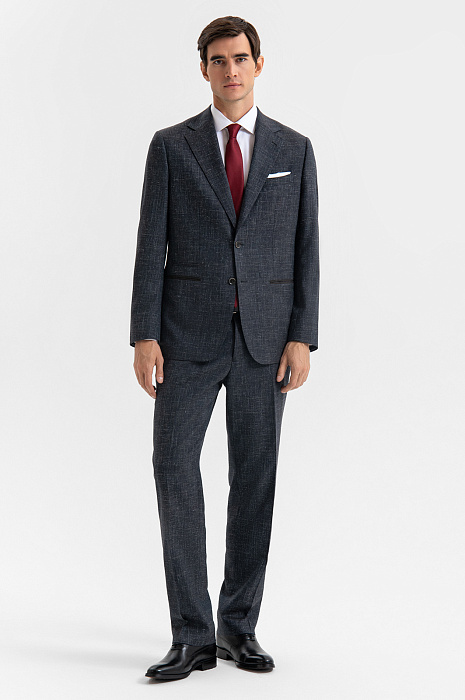 Брюки KANZLER глубокого из шерсти, льна и шёлка сочетают классическую структуру и современную лёгкость. Глубокий синий цвет с лёгким меланжевым эффектом делает образ выразительным, но при этом сдержанным. Модель дает множество вариантов стилизации, сочетаясь с сорочками, рубашками и тонкими джемперами из шерсти и кашемира. Облегающий силуэт и стрелки на брюках задают вертикаль, удлиняя линию ног. Благодаря составу — костюмная шерсть Супер 120s (84%) с добавлением льна, шёлка и эластана — ткань хорошо держит форму, дышит, сохраняет естественное тепло и легко адаптируется к движению. Волокна натурального происхождения создают шероховатую фактуру и поддерживают комфорт в течении всего дня. Параметры модели: рост 192, 101-76-97 Размер на модели: 50