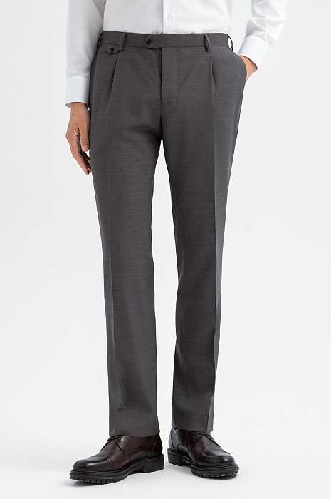 Брюки из шерсти и шелка с водоотталкивающей обработкой, цвет серый, цена 14 990 руб., код 270081 - купить в Уфе в интернет-магазине KANZLER