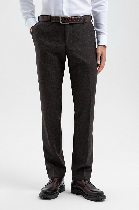 Брюки из шерсти, устойчивой к сминанию и загрязнениям, цвет коричневый, цена 14 990 руб., код 270358 - купить в Уфе в интернет-магазине KANZLER