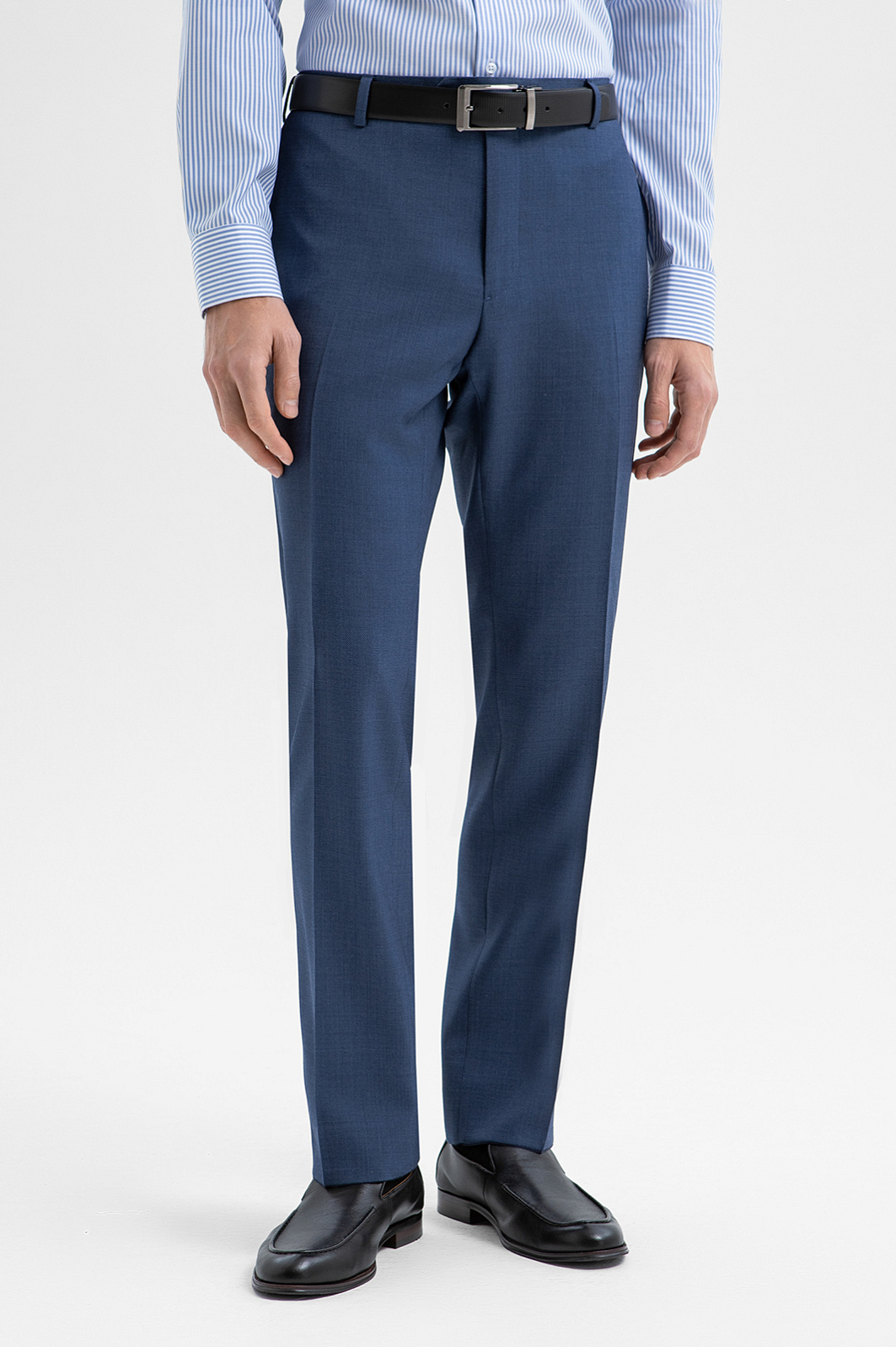 Синие брюки KANZLER из 100% шерсти мериноса — базовый элемент элегантного делового гардероба. Их можно носить с сорочками и джемперами, а для создания цельного костюма, который подходит для официальных мероприятий и светских выходов, дополнить пиджаком KANZLER из такой же ткани. Слегка зауженный крой брюк мягко подчёркивает линию ног, а аккуратные стрелки вытягивают силуэт и придают фигуре стройность. Благородная долговечная ткань сделана из мягкой и нежной шерсти мериноса, которая поддерживает комфортную для тела температуру. Упругие волокна устойчивы к сминанию и прекрасно держат форму.