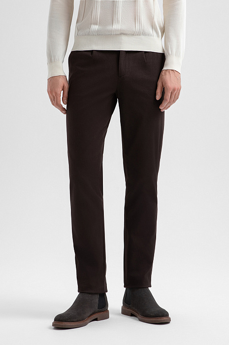 Брюки из хлопка, цвет коричневый, цена 12 990 руб., код 271306 - купить в Уфе в интернет-магазине KANZLER