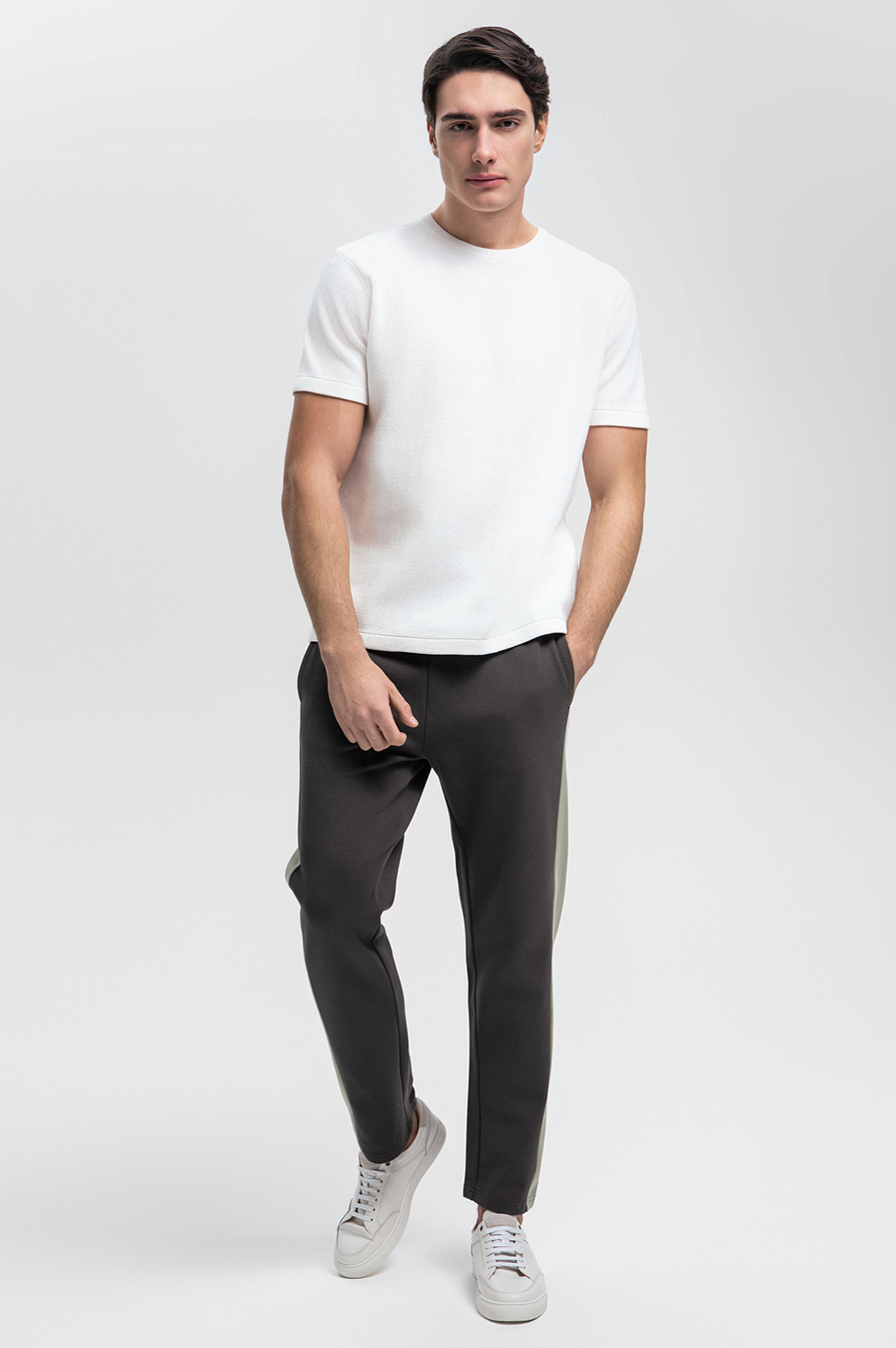 Серые спортивные брюки KANZLER подарят ощущение лёгкости и свободы в каждом движении. Инновационный смесовый материал (86% хлопок, 11% полиэстер, 3% спандекс) сочетает мягкость, прочность и эластичность. Эффектные лампасы визуально вытягивают силуэт, а кулиска обеспечивает идеальную посадку по фигуре. Нейтральный серый цвет позволяет сочетать брюки с повседневными элементами, создавая баланс спортивного стиля и утончённой элегантности – идеальный выбор для прогулок, путешествий или городской жизни. Для создания цельного образа джоггеры можно дополнить толстовкой из нашей коллекции. Параметры модели: рост 190, 103-83-99 Размер на модели: M
