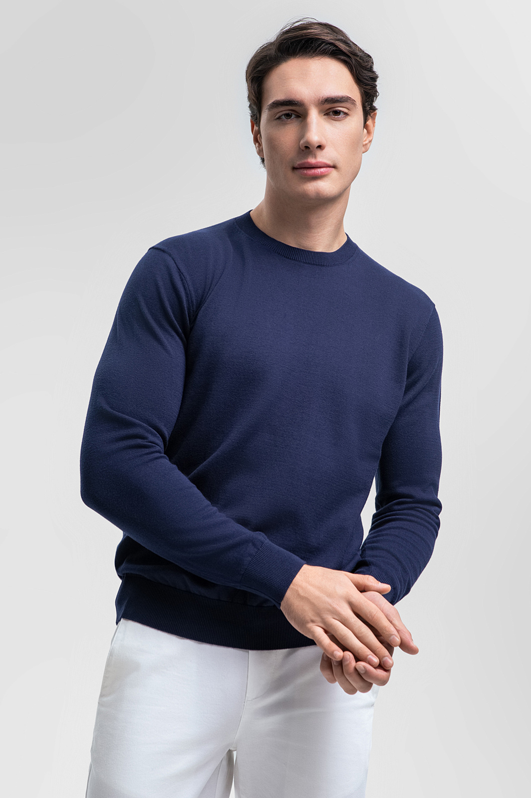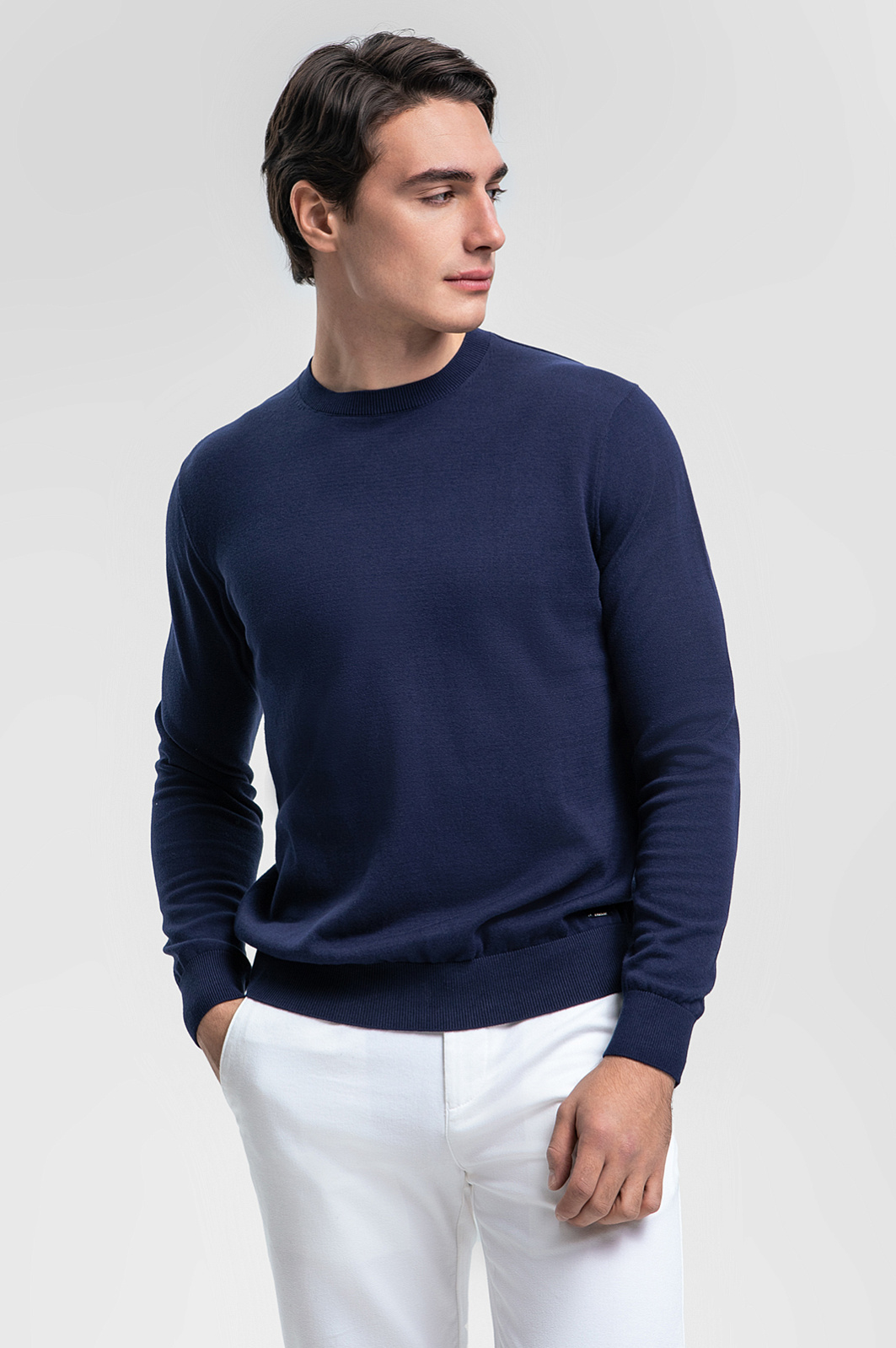 Джемпер KANZLER выполнен из 100% хлопка высочайшего качества, что гарантирует мягкость, комфортное прилегание и отличную воздухопроницаемость. Круглый ворот и длинные рукава придают изделию универсальность, вписывая его в гардероб любого сезона. Темно-синий оттенок подчеркнет вашу индивидуальность, соединяя строгость и непринужденность. Джемпер легко комбинируется как с классическими брюками, так и с джинсами, позволяя создавать стильные образы для офиса, прогулок или встреч с друзьями. Параметры модели: рост 190, 103-83-99 Размер на модели: M
