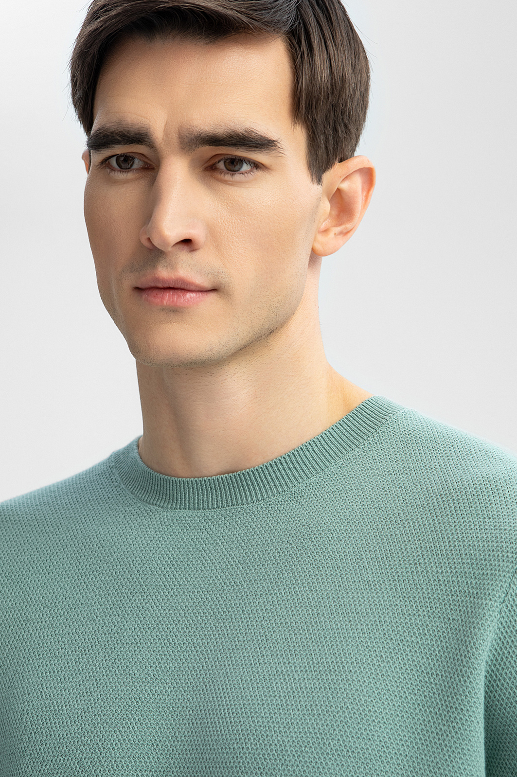 Светло-зеленый цвет джемпера KANZLER символизирует свежесть и гармонию и идеально сочетается с высоким качеством материала. Хлопок Пима, известный своей исключительной мягкостью, дарит невероятное ощущение комфорта, которое сопровождает вас в течение всего дня. Длинные волокна обеспечивают прочность и сохранение формы, делая джемпер неподвластным времени. Цвет не теряет своей яркости благодаря превосходной способности хлопка Пима удерживать краску - все, чтобы вы наслаждались премиальным качеством в течение долгого времени. Джемпер станет универсальным выбором для любого сезона. Параметры модели: рост 192, 101-76-97 Размер на модели: M