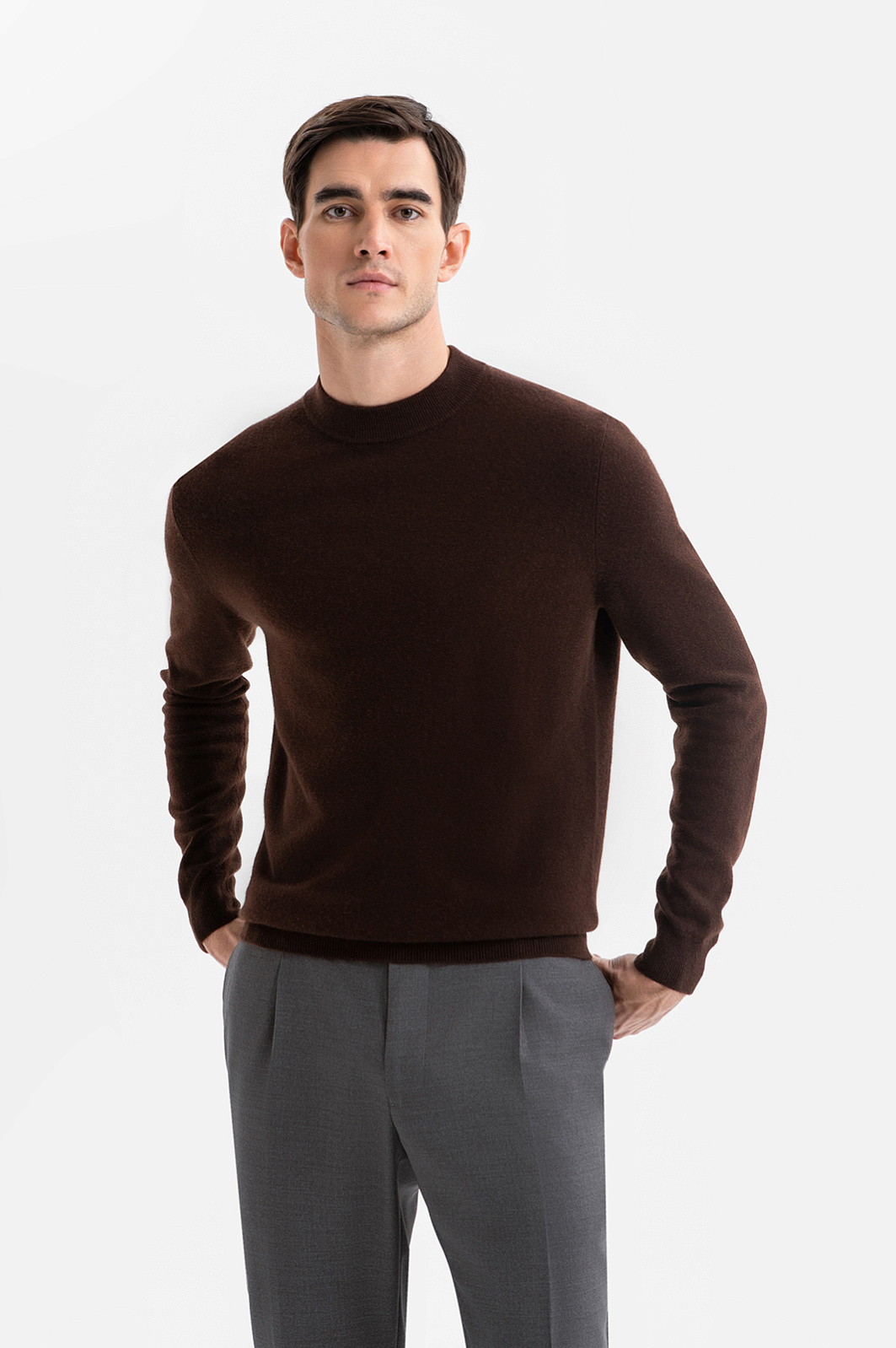 Джемпер KANZLER оттенка горького шоколада из превосходного 100-процентного кашемира — воплощение сдержанной роскоши, комфорта, элегантности и безупречного качества — лимитированной коллекции дизайнерских вещей из дорогих благородных тканей. Универсальный коричневый оттенок придаёт облику благородство и основательность. Полукруглый неглубокий вырез горловины, манжеты и нижний край оформлены трикотажной резинкой, которая обеспечивает безупречную посадку и завершённость силуэта. Гладкий трикотаж добавляет образу строгости. Он выполнен из дорогого кашемира — легчайших натуральных волокон, которые мягко обнимают тело и делают ношение джемпера настоящим удовольствием. Параметры модели: рост 192, 101-76-97 Размер на модели: M