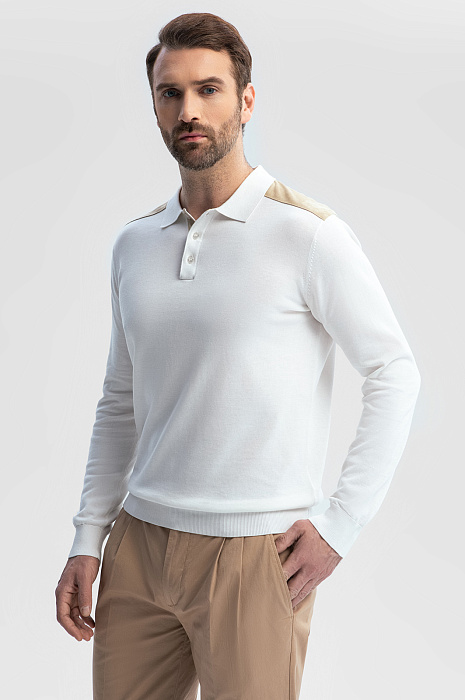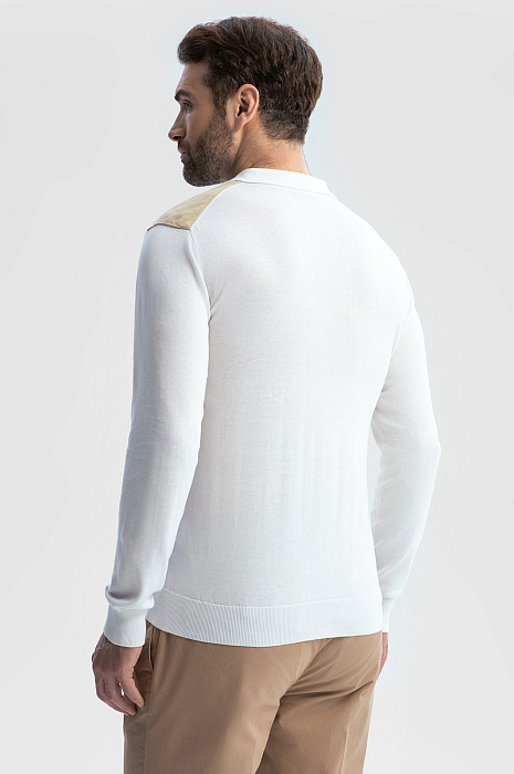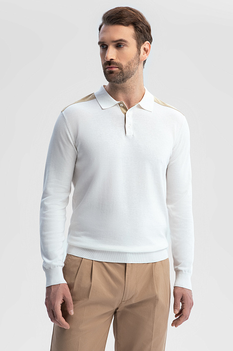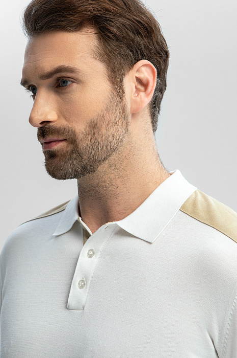 Поло из хлопка, шелка и льна с отделкой из алькантары, цвет белый, цена 8 990 руб., код 269187 - купить в Уфе в интернет-магазине KANZLER