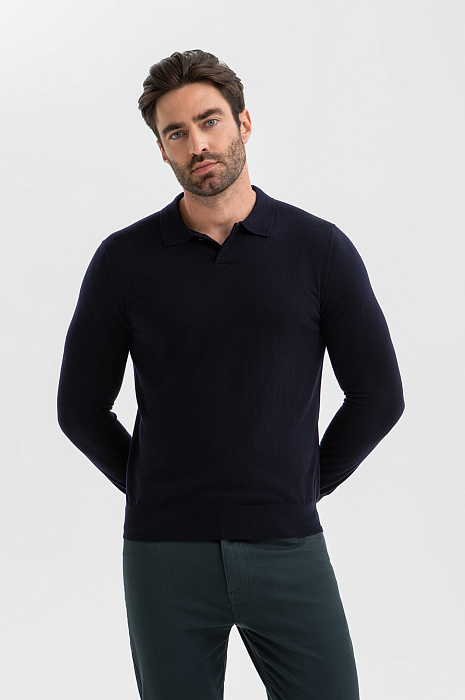 Джемпер поло из шерсти и кашемира, цвет синий, цена 6 990 руб., код 270039 - купить в Уфе в интернет-магазине KANZLER