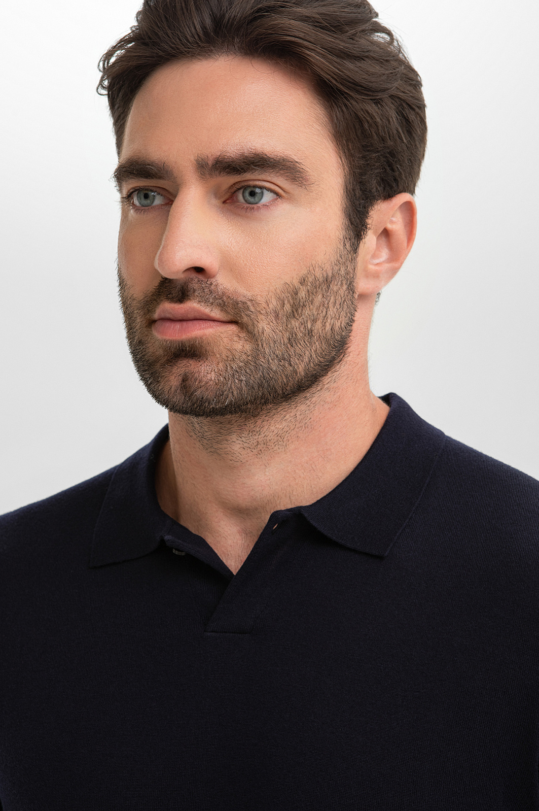Джемпер поло KANZLER в глубоком темно-синем оттенке создает образ уверенного мужчины, который будет одинаково органично смотреться и в офисе, и на вечернем мероприятии. Состав – формула практичной роскоши: натуральная шерсть высочайшего качества (95%) обеспечивает терморегуляцию и устойчивость к сминанию, а добавка кашемира (5%) придает материалу шелковистую фактуру и благородное сияние. Плотная вязка держит безупречную форму, подчеркивая силуэт без стеснения движений. Отложной воротник застегивается на пуговицу. Параметры модели: рост 192, 108-83-102 Размер на модели: M