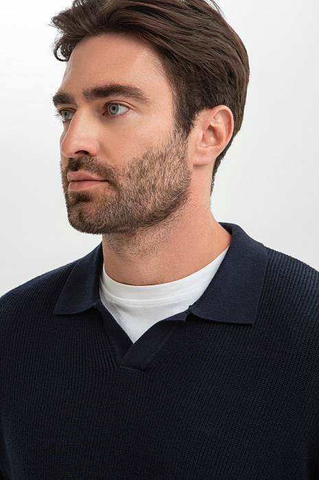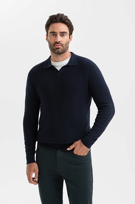 Джемпер поло из хлопка и кашемира, цвет синий, цена 6 990 руб., код 270047 - купить в Уфе в интернет-магазине KANZLER
