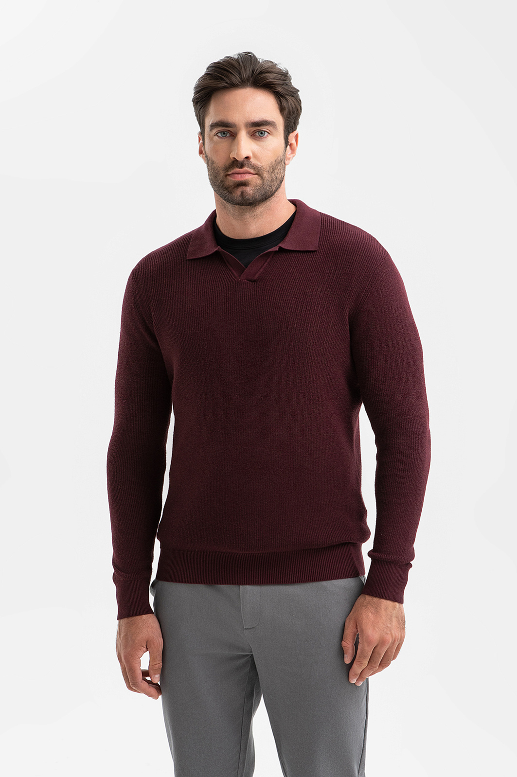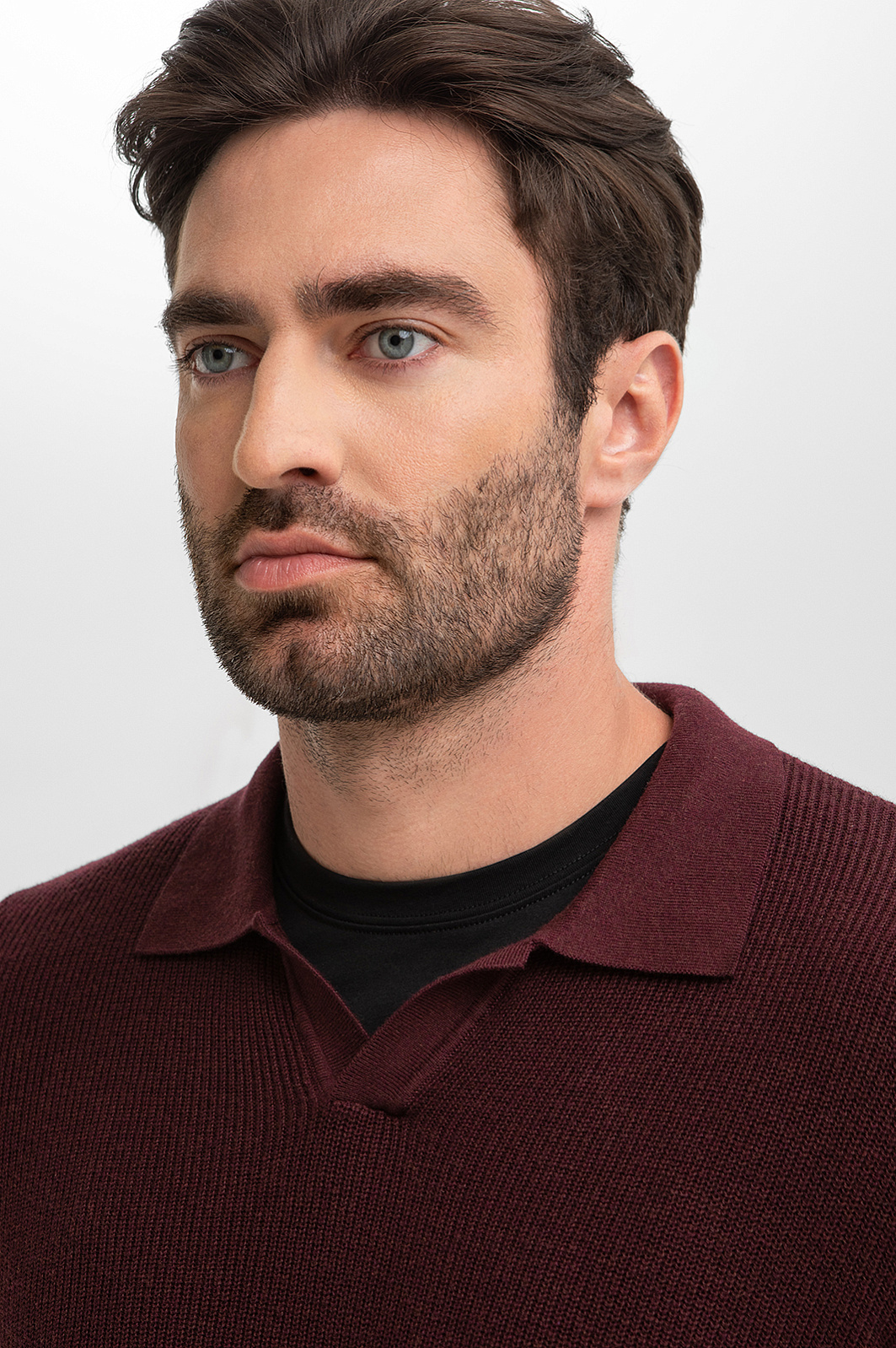 Джемпер поло из хлопка и кашемира, цвет бордовый, цена 5 990 руб., код 270048 - купить в Уфе в интернет-магазине KANZLER