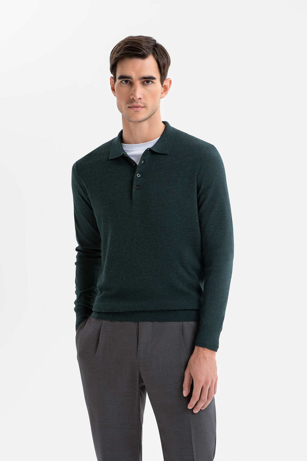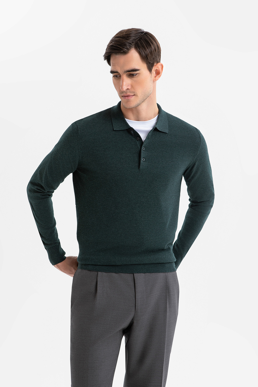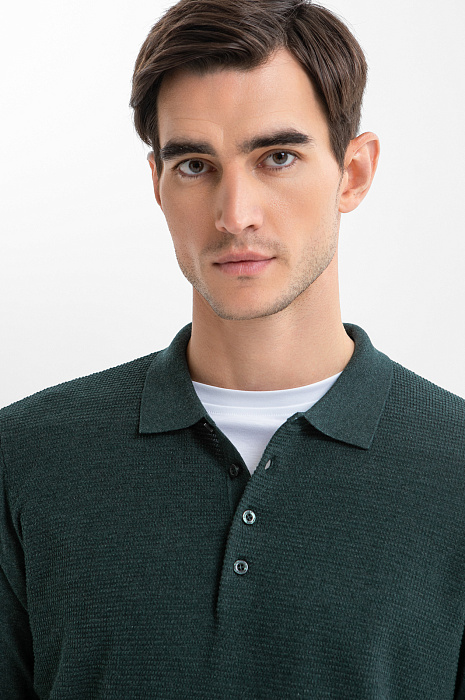 Джемпер поло из хлопка Пима, цвет зеленый, цена 6 990 руб., код 270232 - купить в Уфе в интернет-магазине KANZLER