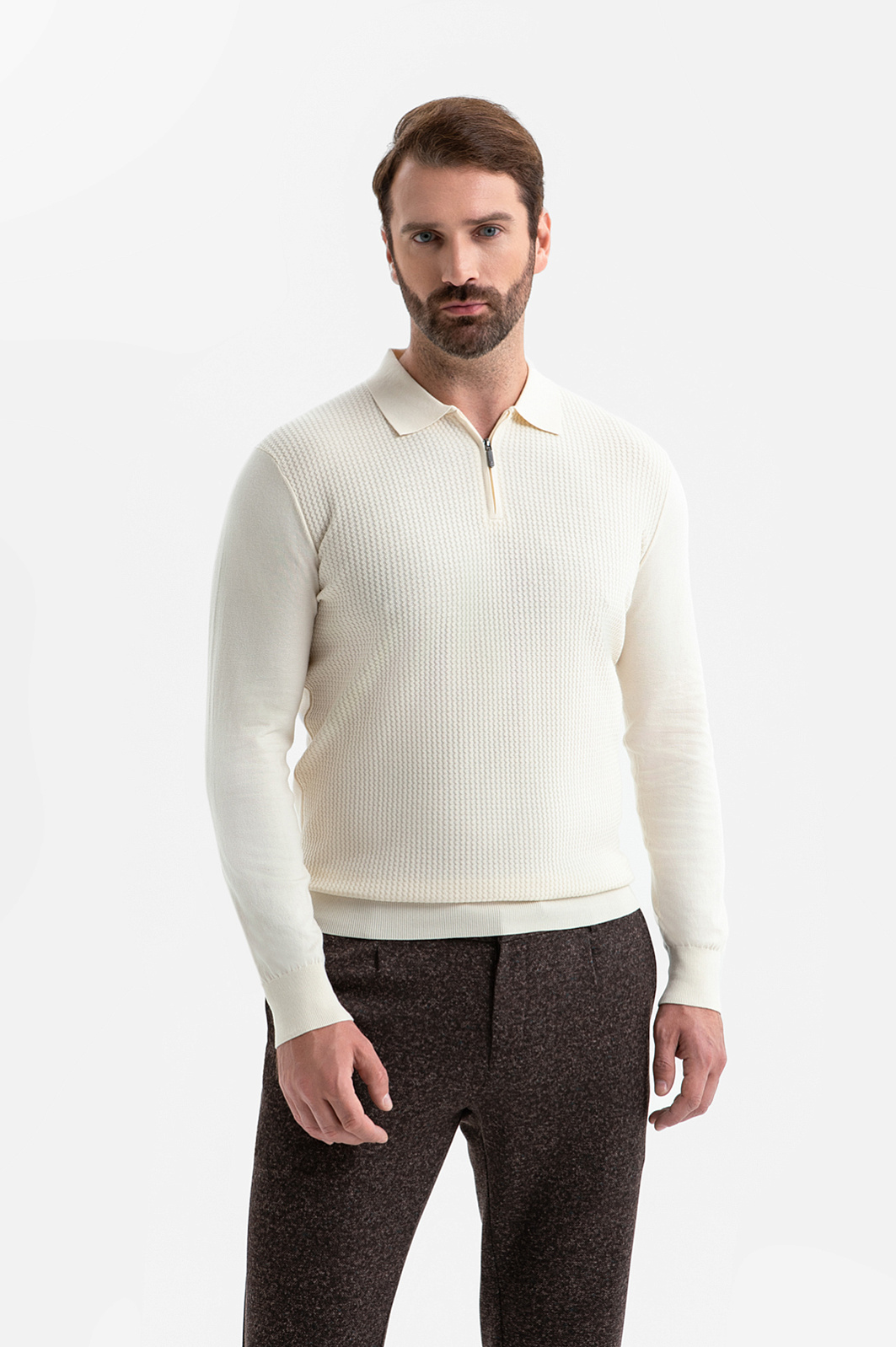 Джемпер поло из хлопка Пима, цвет бежевый, цена 8 990 руб., код 270234 - купить в Уфе в интернет-магазине KANZLER