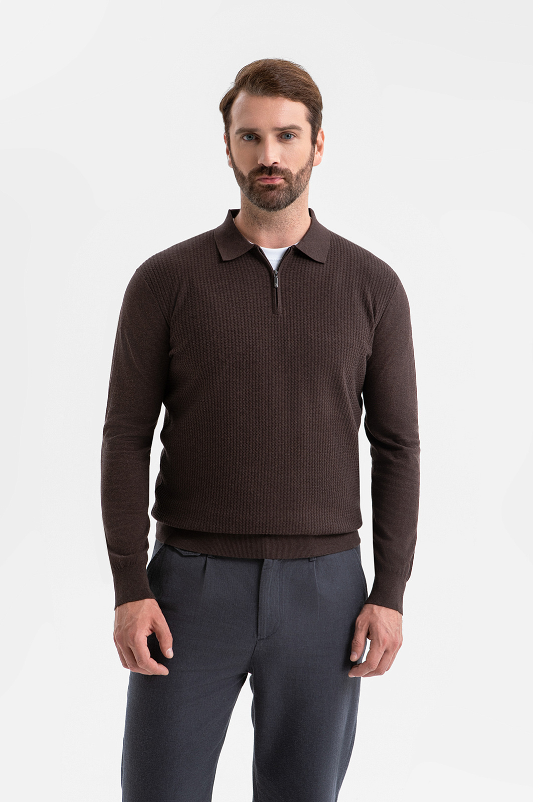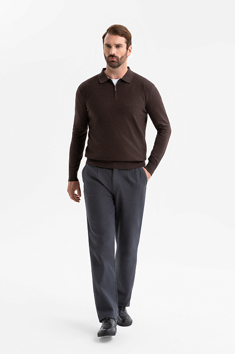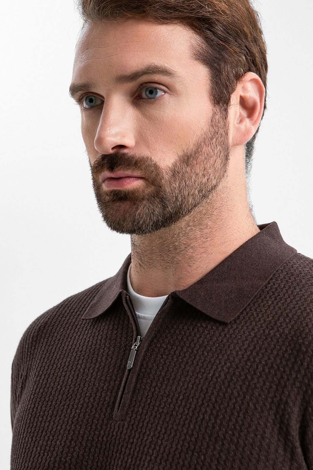 Джемпер поло из хлопка Пима, цвет коричневый, цена 8 990 руб., код 270235 - купить в Уфе в интернет-магазине KANZLER