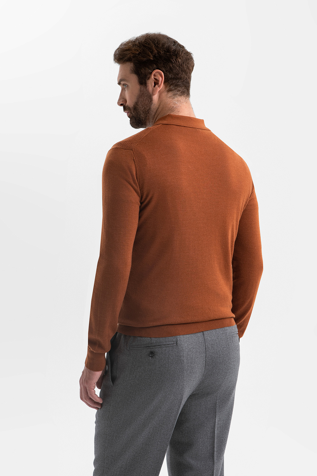 Джемпер поло из шерсти и шелка, цвет коричневый, цена 7 990 руб., код 270238 - купить в Уфе в интернет-магазине KANZLER