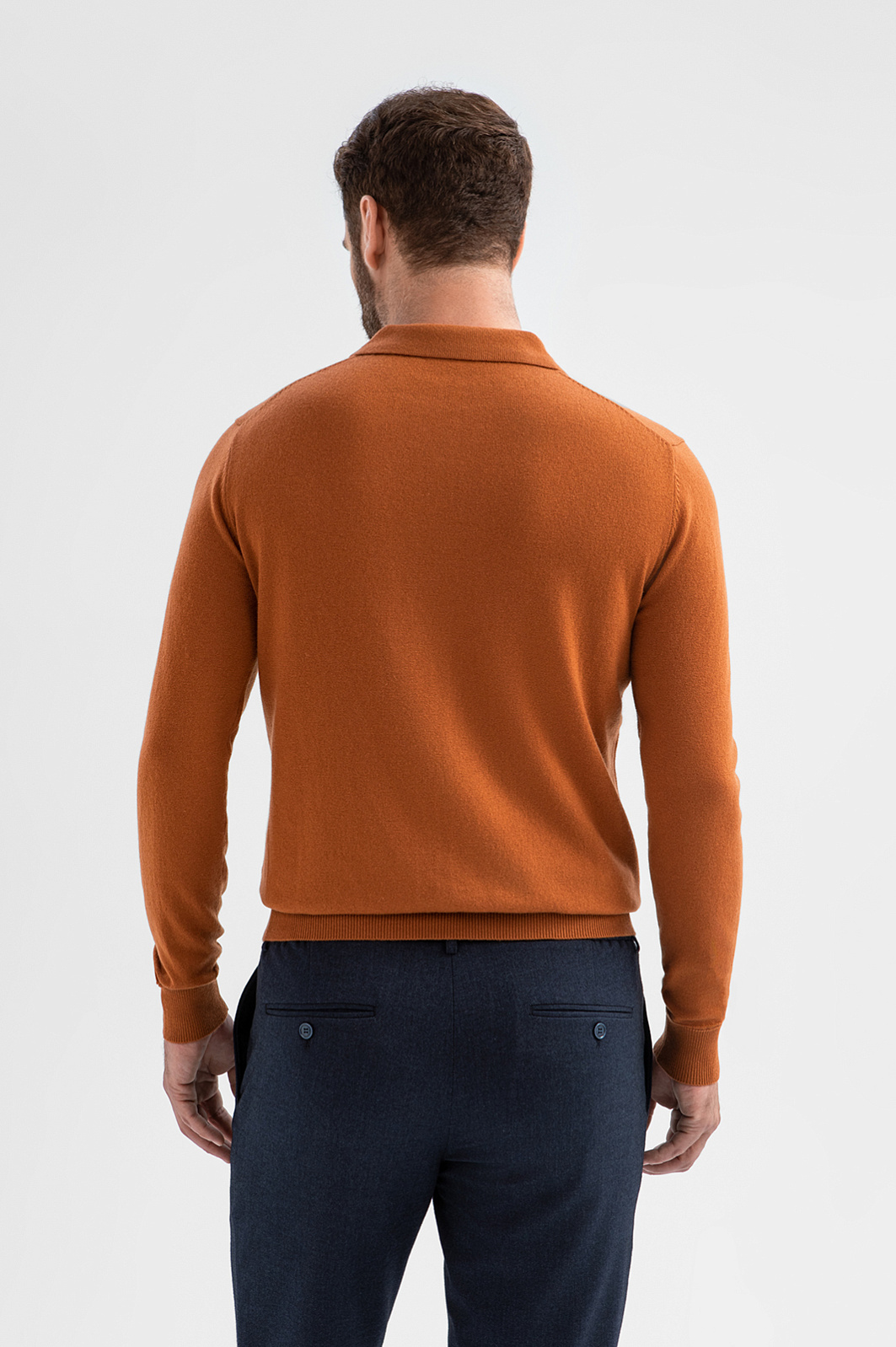 Роскошный джемпер поло KANZLER из шерсти и кашемира согревающего терракотового оттенка — яркая деталь образа, которая легко сочетается базовыми вещами — джинсами и более формальными брюками. Традиционный крой с неглубоким треугольным вырезом и мягким отложным воротником подчёркивает универсальность модели, а мягкие резинки на манжетах и по низу обеспечивают идеальную посадку. Состав трикотажа — дуэт натуральных материалов (90% шерсти и 10% кашемира). Упругие волокна шерсти поддерживают форму и сохраняют тепло, а нежные тонкие ворсинки кашемира добавляют изысканную мягкость. Параметры модели: рост 189, 102-80-99 Размер на модели: M