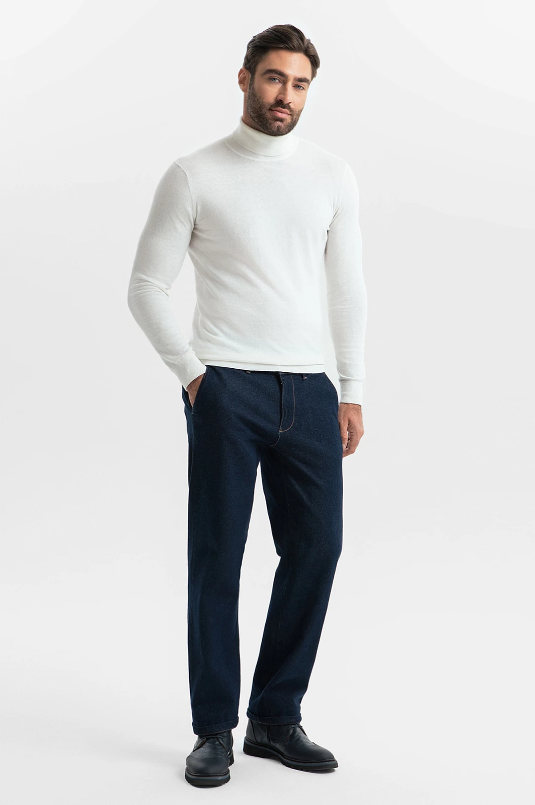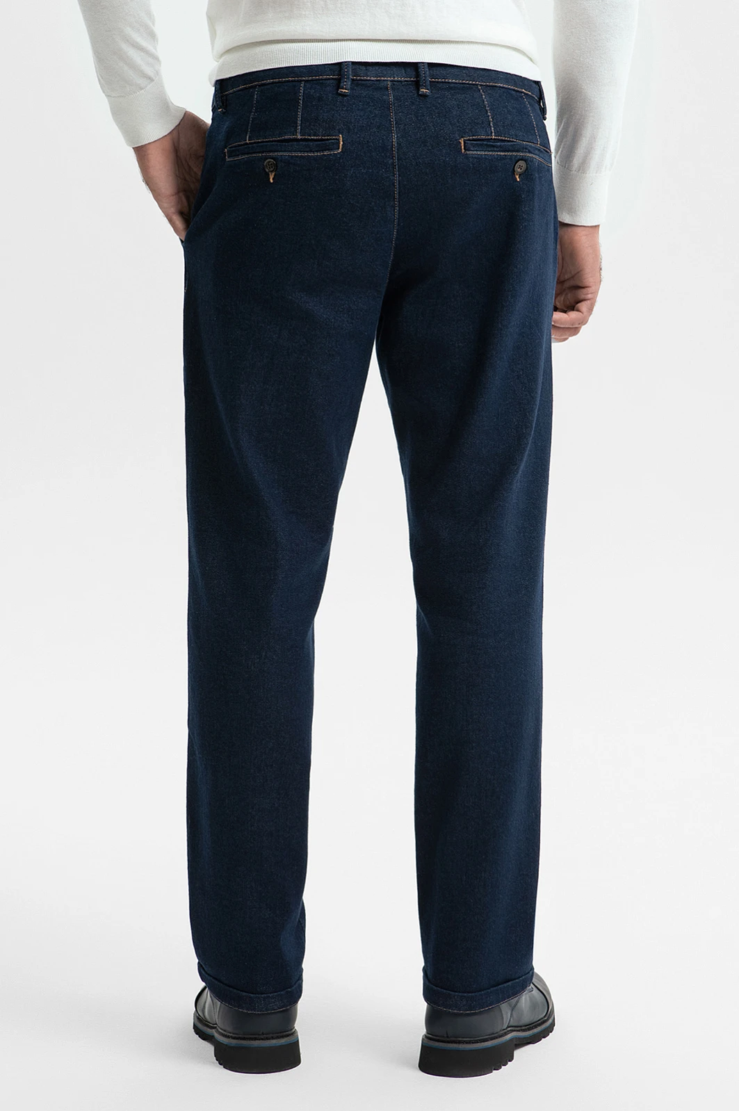 Удобные темно-синие брюки KANZLER из хлопкового денима кроя — идеальный вариант для работы, активного отдыха и путешествий. Свободный непринужденный крой не сковывает движений и задает легкое расслабленное настроение, особенно в сочетании с уютными трикотажными вещами. Отличительными чертами являются небольшие вытачки сзади, которые обеспечивают хорошую посадку, и карманы в рамку с пуговицей. Качественный деним сделан из хлопка (98%) — мягких природных гипоаллергенных гигроскопичных волокон. Благодаря небольшому включению в состав эластана (2%), материал адаптируется к фигуре, но не растягивается, сохраняя первоначальную форму. Параметры модели: рост 192, 108-83-102 Размер на модели: 34