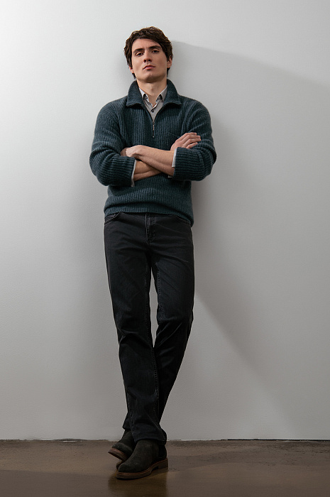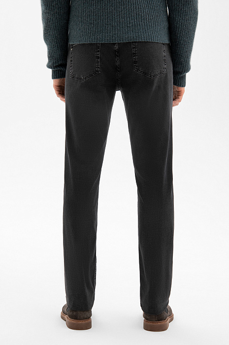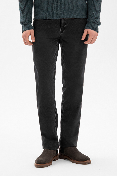 Джинсы KANZLER традиционного кроя с пятью карманами — основа стиля кежуал. Универсальный чёрный цвет позволяет легко сочетать джинсы с рубашками, трикотажем, пиджаками и верхней одеждой. Прямой силуэт обеспечивает комфортную посадку и одинаково хорошо работает в повседневных и более собранных образах в стиле умный кежуал. Натуральная ткань из гипоаллергенного хлопка (99%) с добавлением эластана (1%) сочетает естественную воздухопроницаемость и мягкость с необходимой эластичностью. Материал приятен к телу, сохраняет ощущение свежести в течение всего дня, хорошо держит форму и не требует особого ухода.