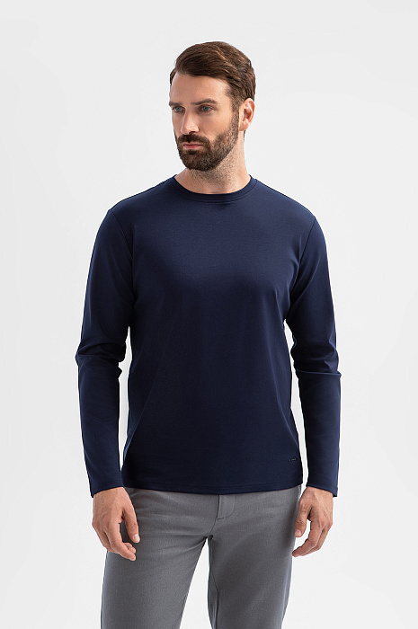 Лонгслив из мерсеризованного хлопка, цвет синий, цена 6 990 руб., код 270219 - купить в Уфе в интернет-магазине KANZLER