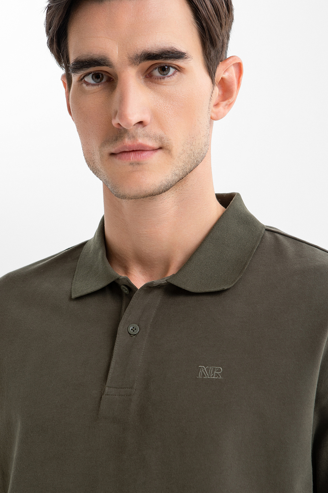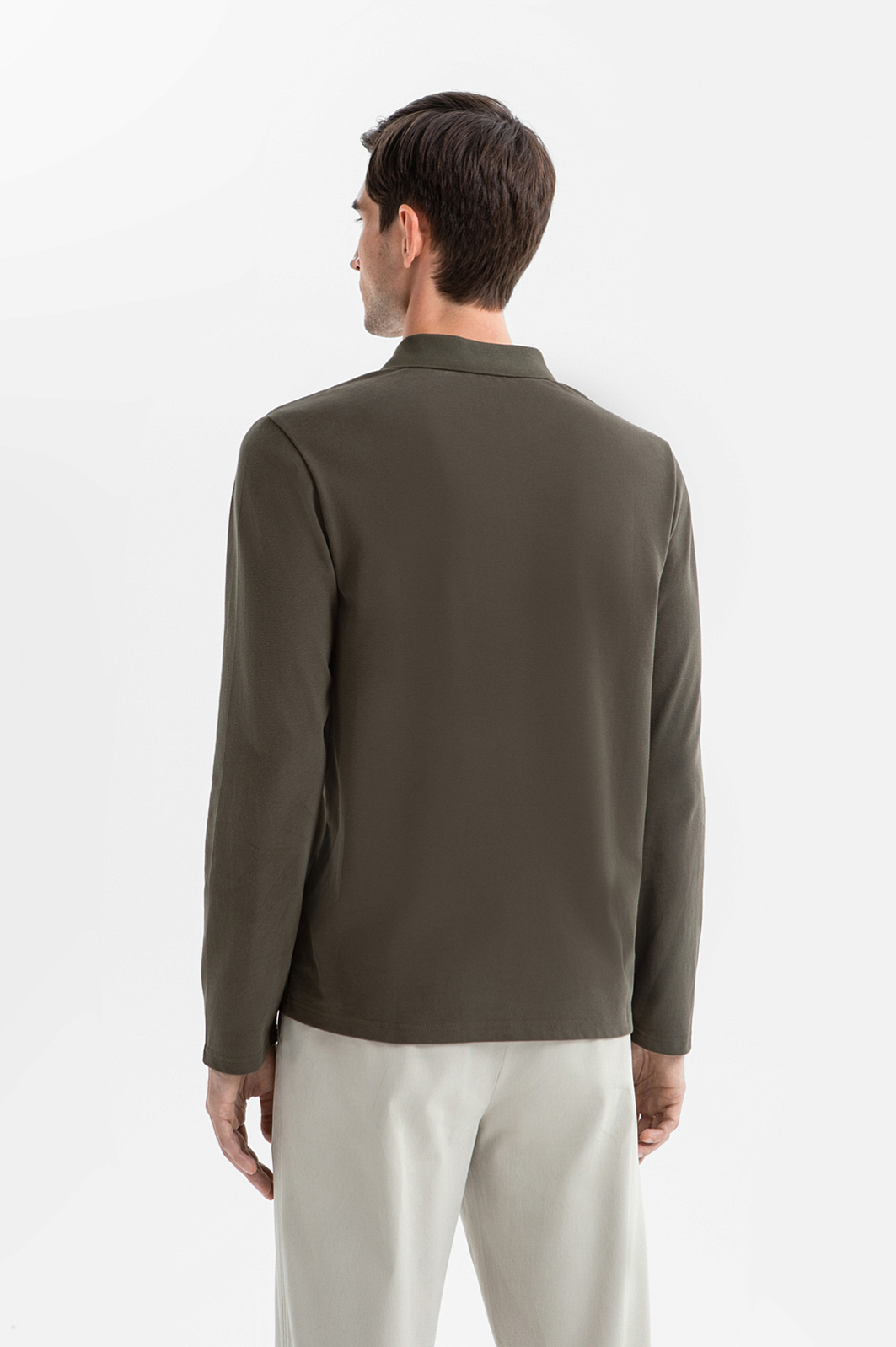 Поло KANZLER с длинным рукавом глубокого коричнево-зелёного оттенка из 100-процентного хлопка — базовый элемент гардероба современного мужчины, для которого важны благородство и сдержанность в образе, воплощённые в высоком качестве, классическом крое и натуральном цвете. Универсальная модель органично смотрится в повседневных и спортивных образах. Небольшой логотип на груди, выполненный в тон, служит акцентом, добавляя индивидуальности. Трикотажные резинки на манжетах и по низу формируют аккуратный силуэт и гарантируют комфорт при движении. Мягкий гладкий трикотаж сделан из чистого гипоаллергенного хлопка, который приятен к телу, поддерживает оптимальный микроклимат и хорошо сохраняет форму. Параметры модели: рост 192, 101-76-97 Размер на модели: M