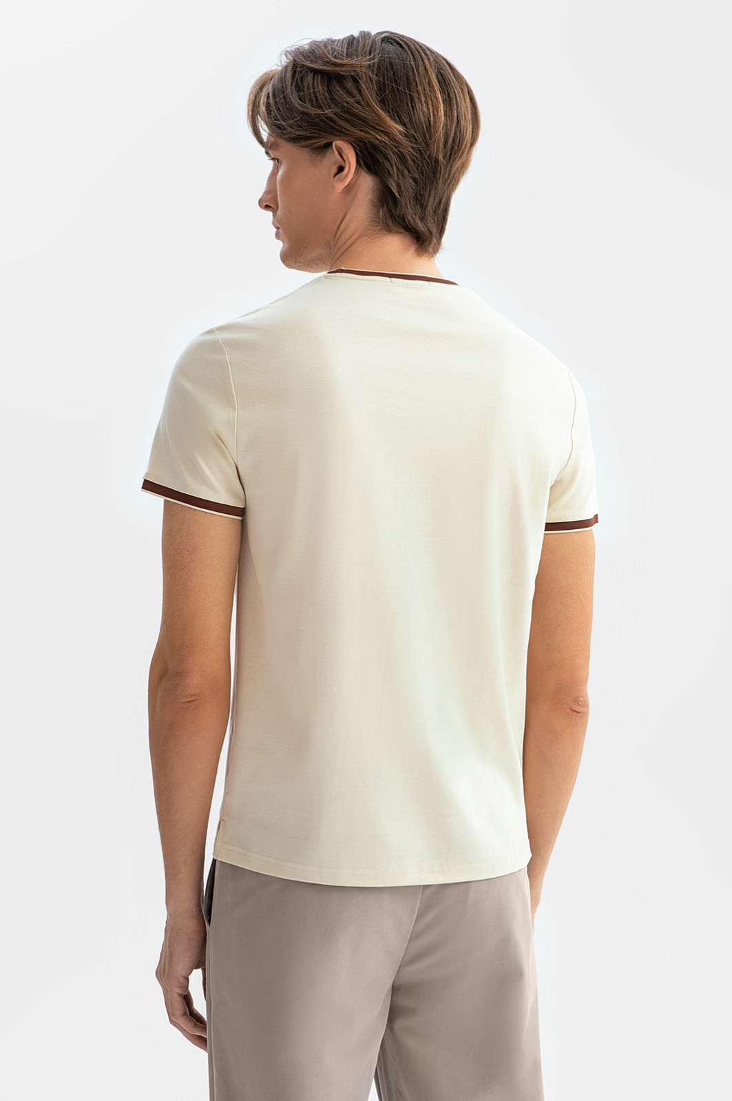 Бежевая футболка KANZLER — это идеальный баланс минимализма и изысканного дизайна. Материал — 100% хлопок, обладающий высокой воздухопроницаемостью и мягкостью, обеспечивает комфорт в любую погоду, а прочная структура ткани сохраняет форму даже после многократных стирок. Приталенный крой подчёркивает достоинства фигуры. Коричневая окантовка на вороте и рукавах добавляет изысканный акцент и выделяет модель из ряда базовых вещей. Сочетайте футболку с брюками или джинсами для завершения стильного образа. Параметры модели: рост 191, 97-77-99 Размер на модели: M