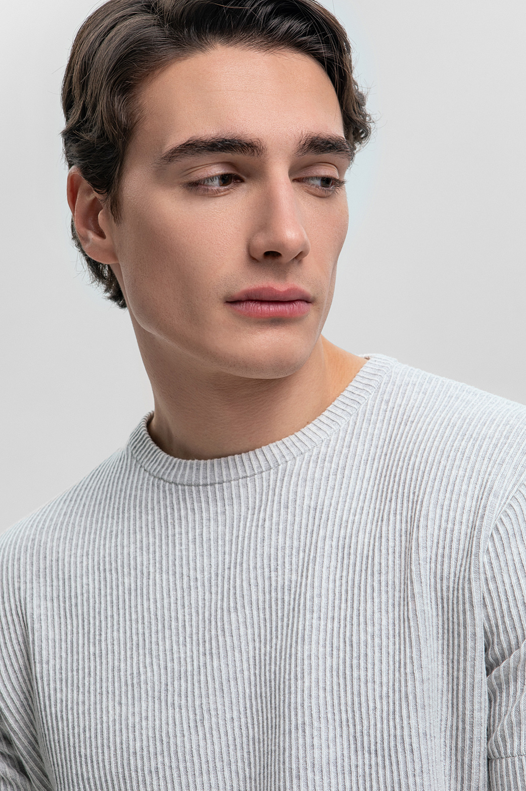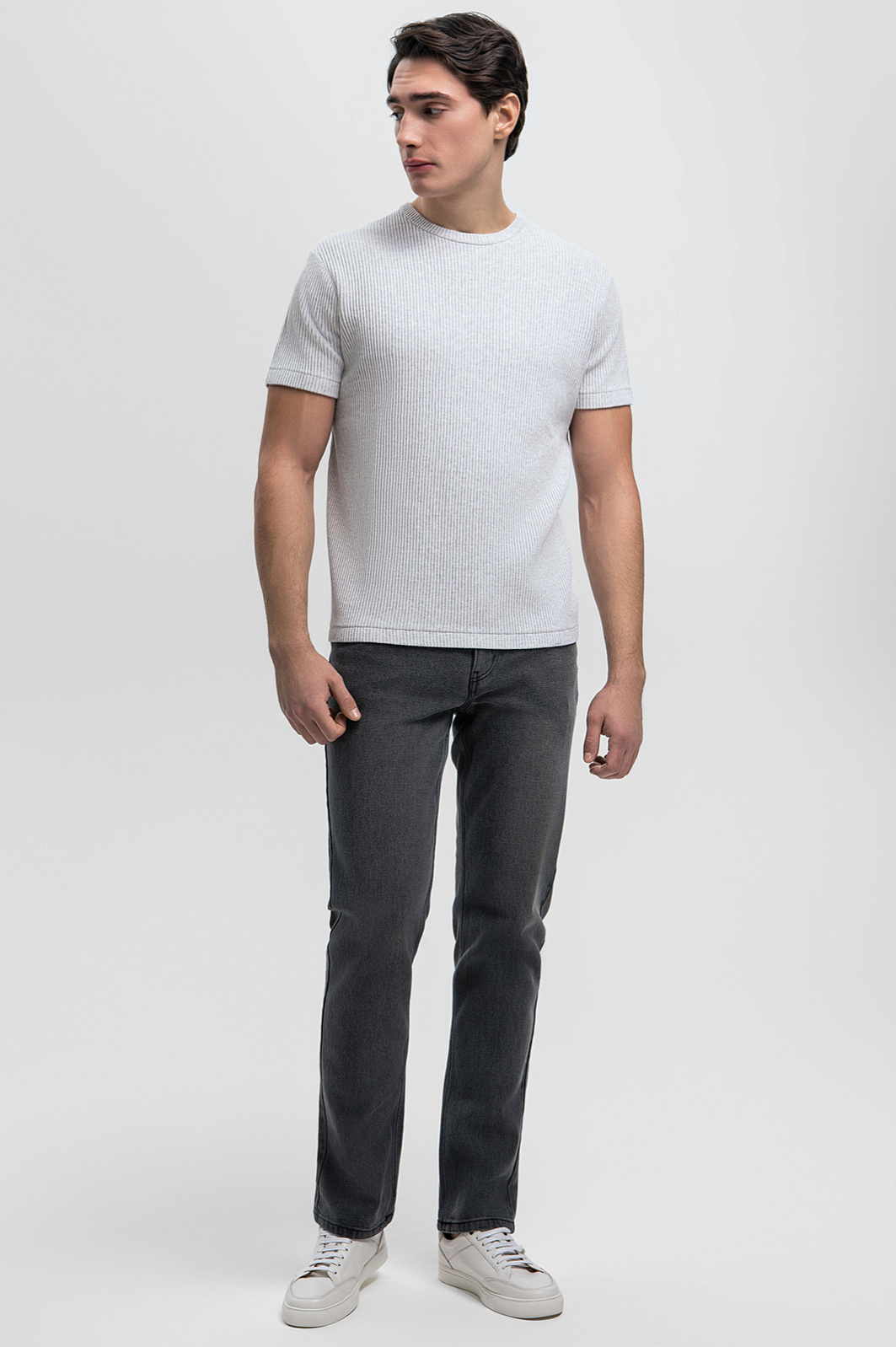 Серая футболка KANZLER из 100% хлопка в рубчик – погружение в безграничный комфорт для ценителей стильного минимализма. Натуральный материал заботится о вашей коже, позволяя ей дышать на протяжении всего дня. Фактура в рубчик придает изделию особый шарм, глубину и характер. Благодаря расслабленному крою, футболка мягко облегает тело, обеспечивая свободу движений и комфорт в любой ситуации, в течение динамичного рабочего дня или активного отдыха. Нейтральный серый цвет позволяет легко интегрировать модель в гардероб. Сочетайте футболку с любыми брюками, джинсами или шортами. Параметры модели: рост 190, 103-83-99 Размер на модели: M