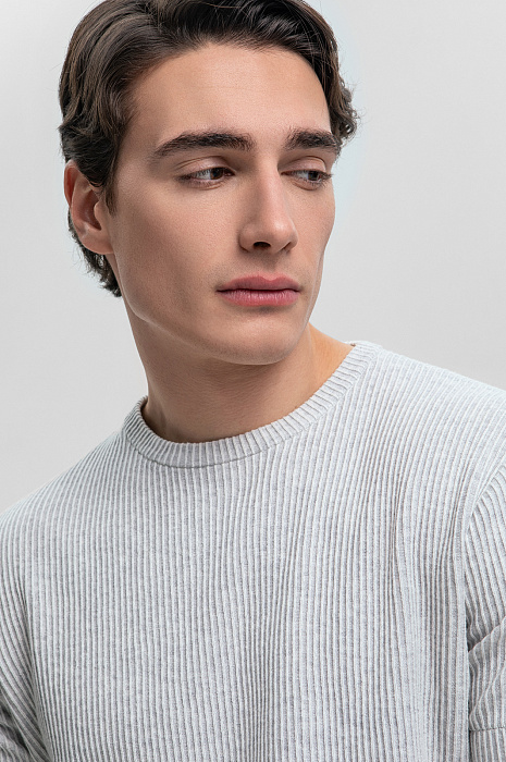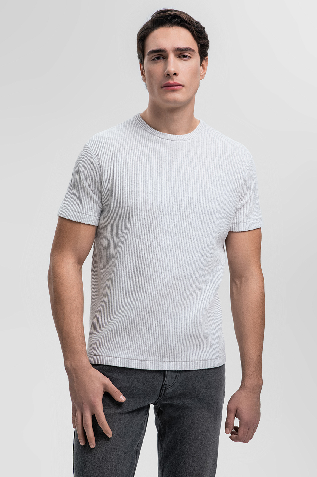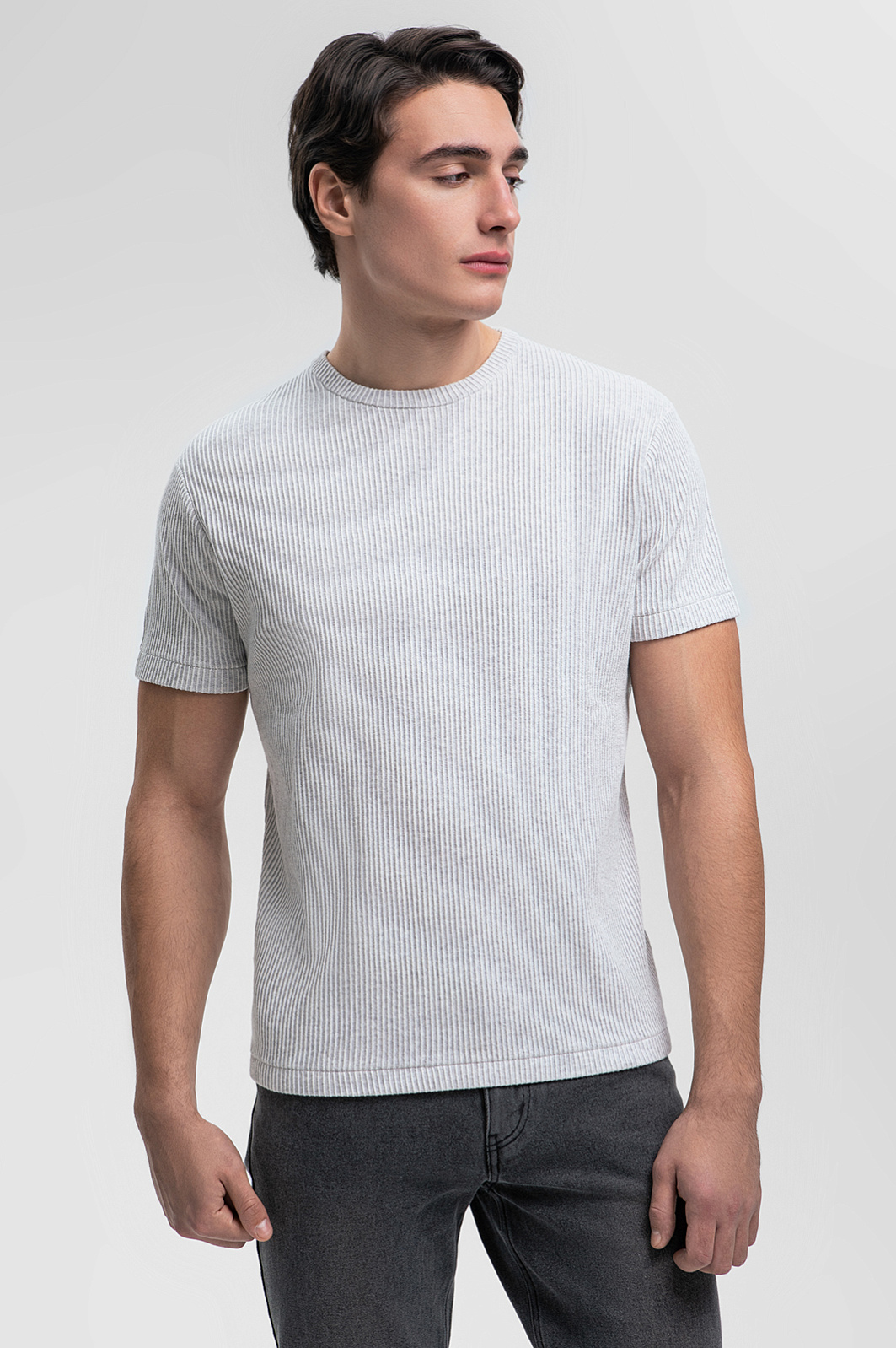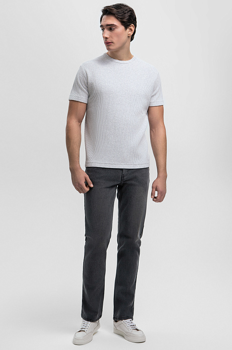 Футболка из хлопка в рубчик, цвет серый, цена 4 990 руб., код 269168 - купить в Уфе в интернет-магазине KANZLER