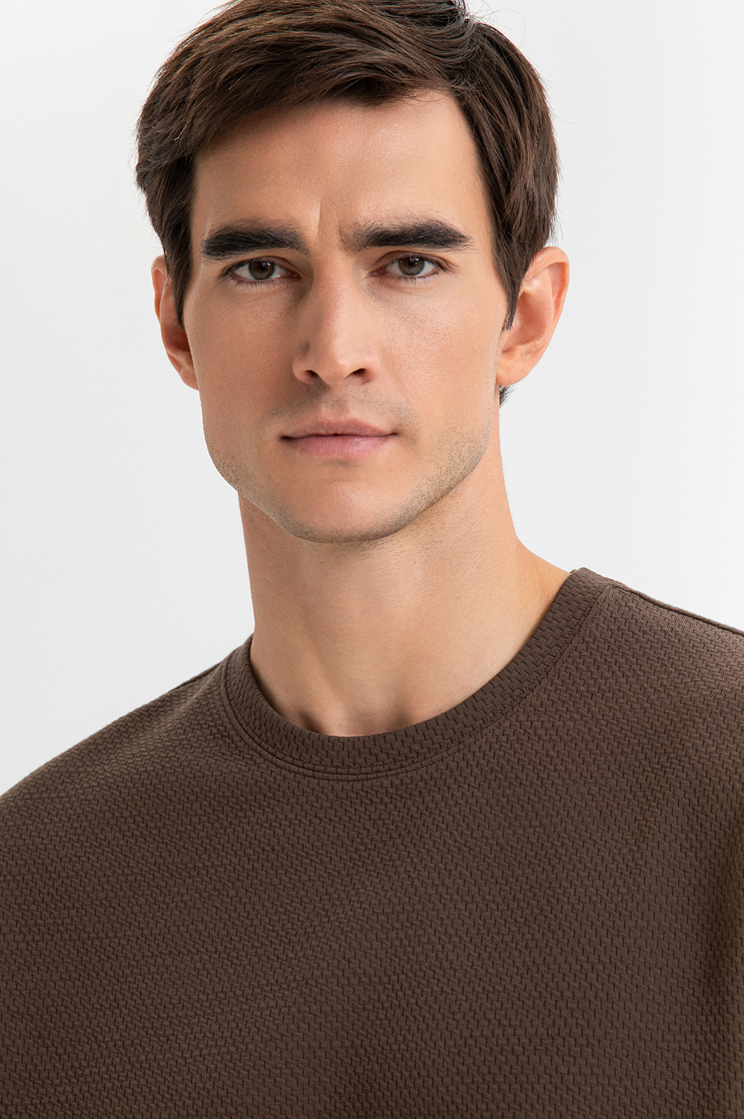Футболка фактурной вязки, цвет коричневый, цена 2 990 руб., код 269999 - купить в Уфе в интернет-магазине KANZLER