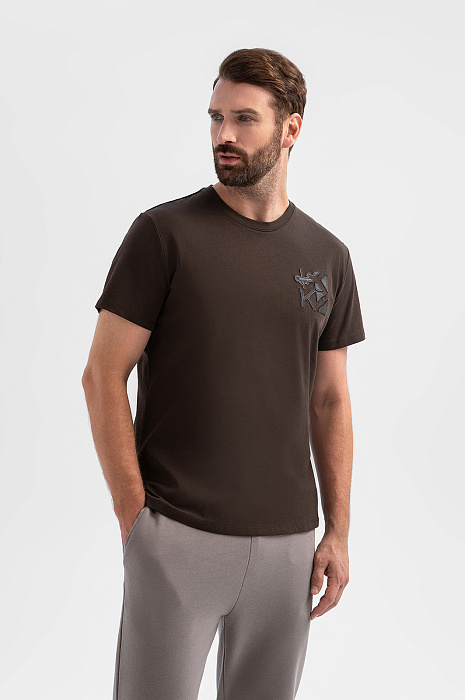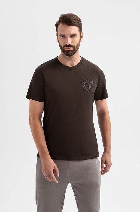 Футболка из хлопка, цвет коричневый, цена 3 990 руб., код 270211 - купить в Уфе в интернет-магазине KANZLER