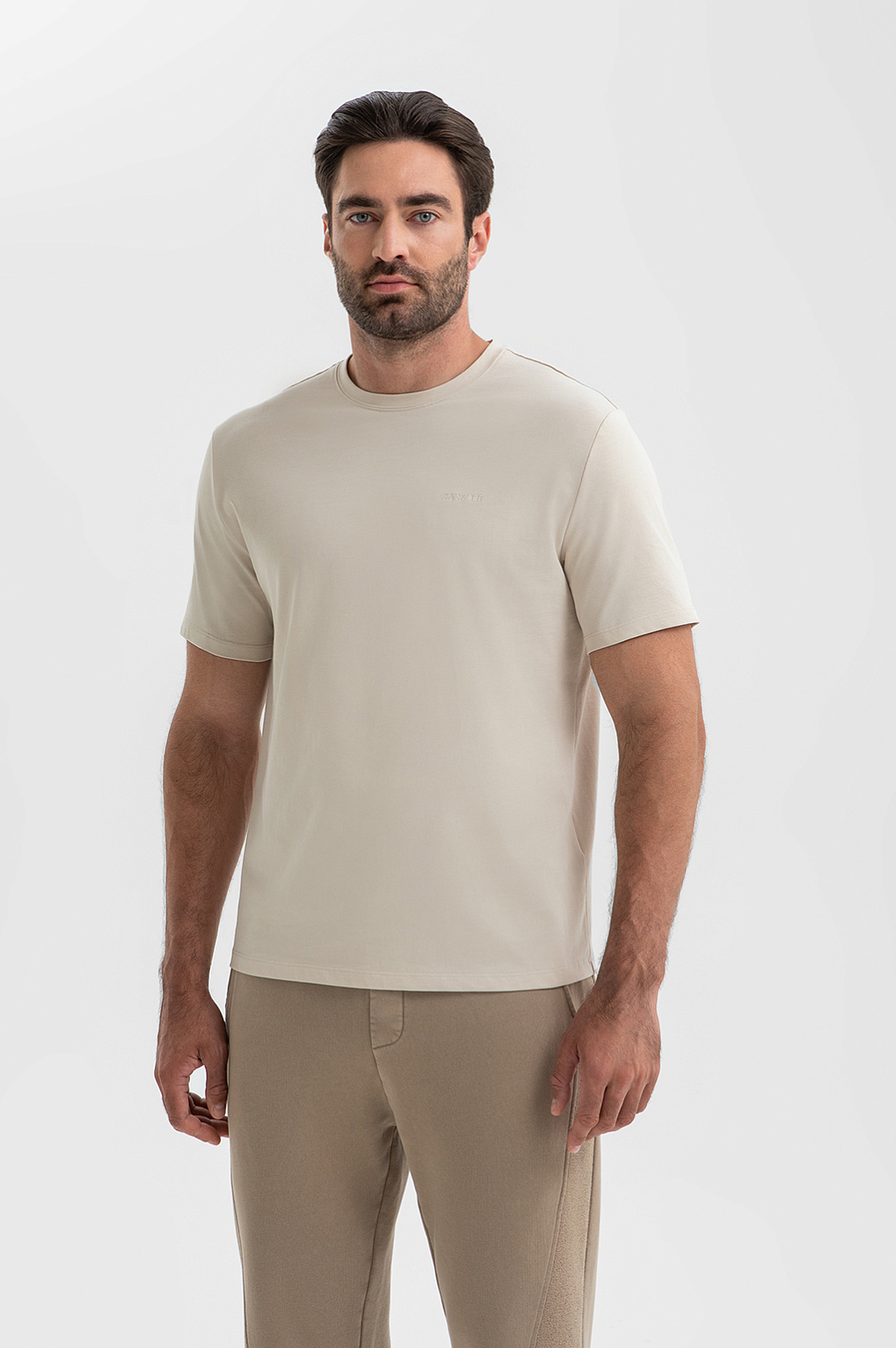 Футболка из хлопка, цвет бежевый, цена 3 990 руб., код 270212 - купить в Уфе в интернет-магазине KANZLER