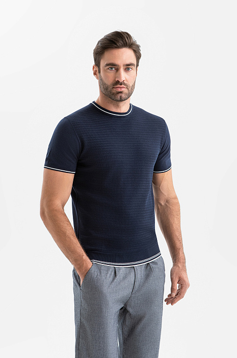 Джемпер из хлопка и льна, цвет синий, цена 10 990 руб., код 271015 - купить в Уфе в интернет-магазине KANZLER