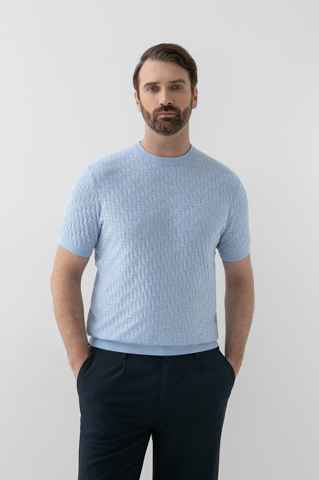 Футболка из хлопка Пима, цвет голубой, цена 8 990 руб., код 271092 - купить в Уфе в интернет-магазине KANZLER