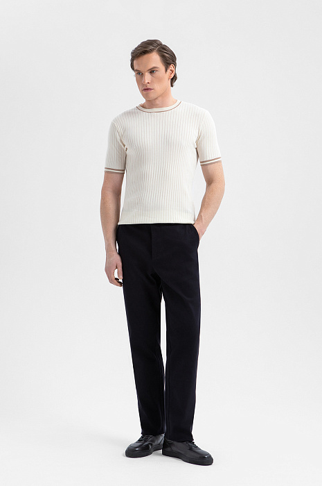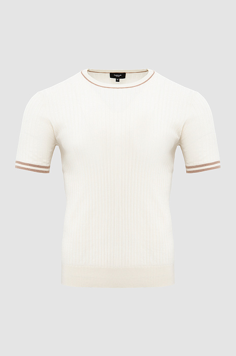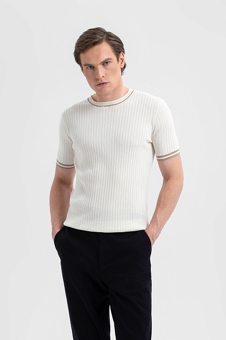Джемпер KANZLER с коротким рукавом из хлопка Пима создаёт свежий элегантный образ, который идеально вписывается в ритм жизни современного мужчины. Нежный молочный оттенок подчёркивает сдержанную роскошь модели, а аккуратные контрастные полоски по краям горловины и рукава придают вещи графичность. В составе — 100% хлопка Пима. Ценный длинноволокнистый материал ценится за шелковистую текстуру, мягкость и долговечность. Натуральный трикотаж поддерживает приятную для тела температуру и сохраняет роскошный вид из сезона в сезон.